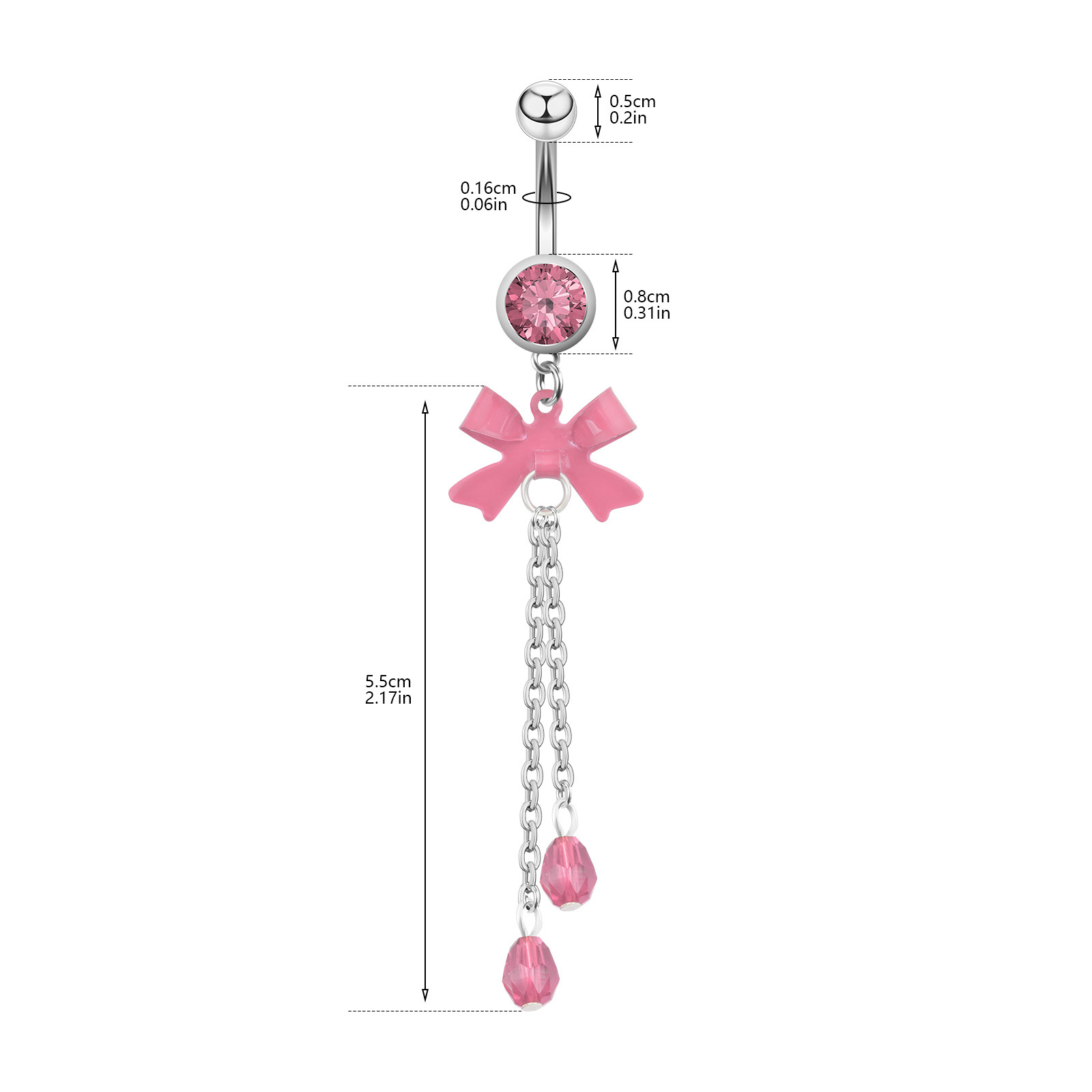 Anneau de ventre en acier inoxydable, Acier inoxydable 304, Noeud papillon, Placage de couleur argentée, bijoux de mode & avec strass, plus de couleurs à choisir, Vendu par PC