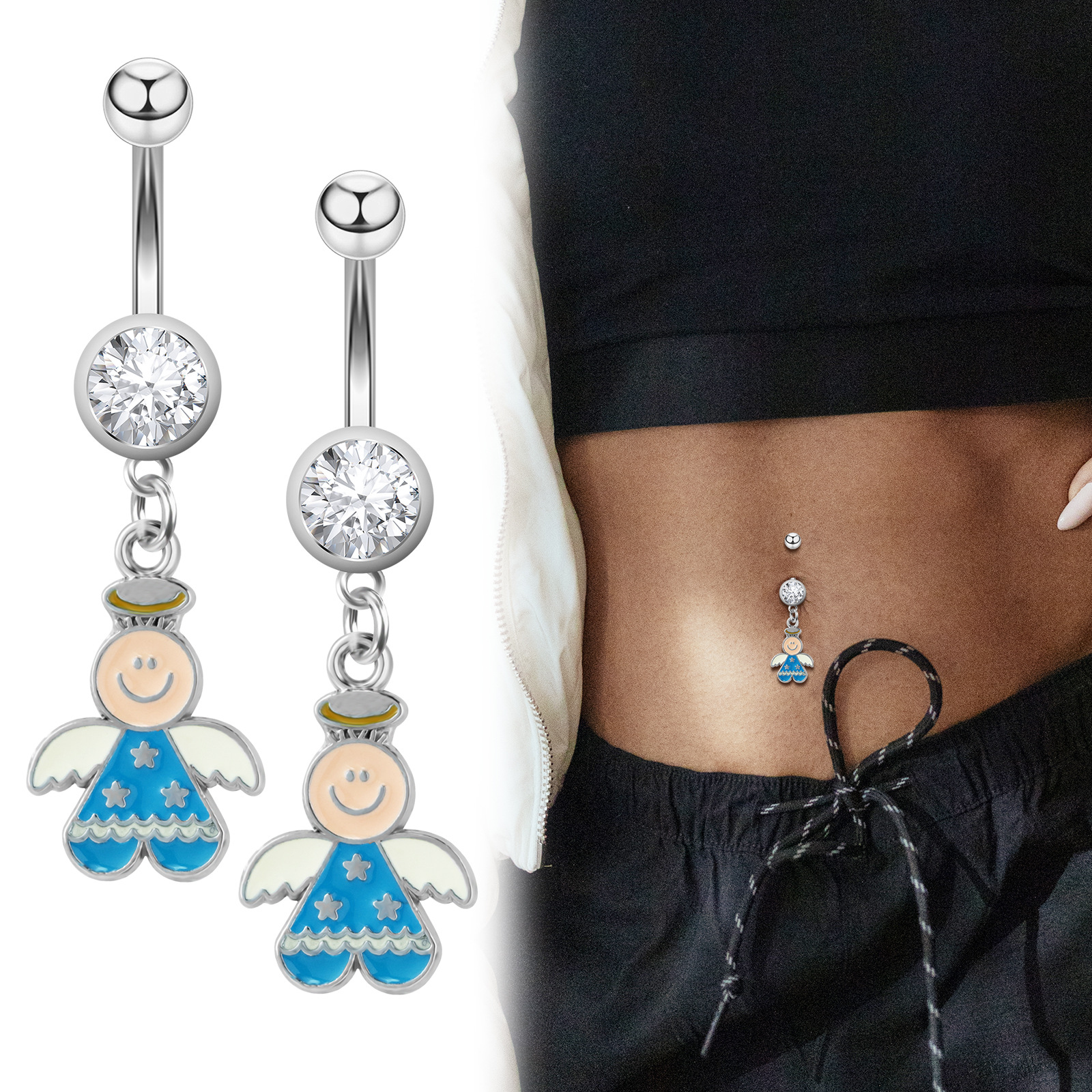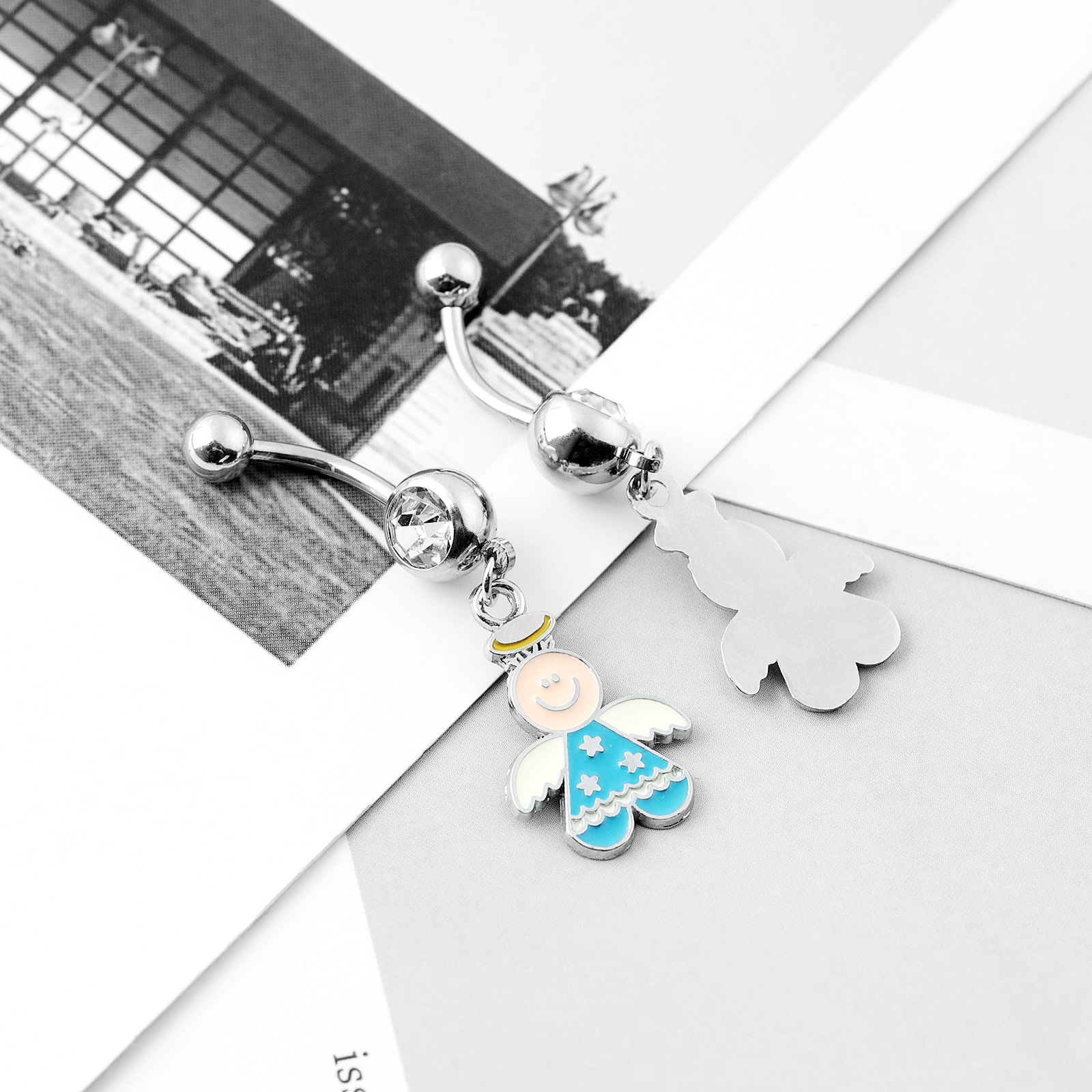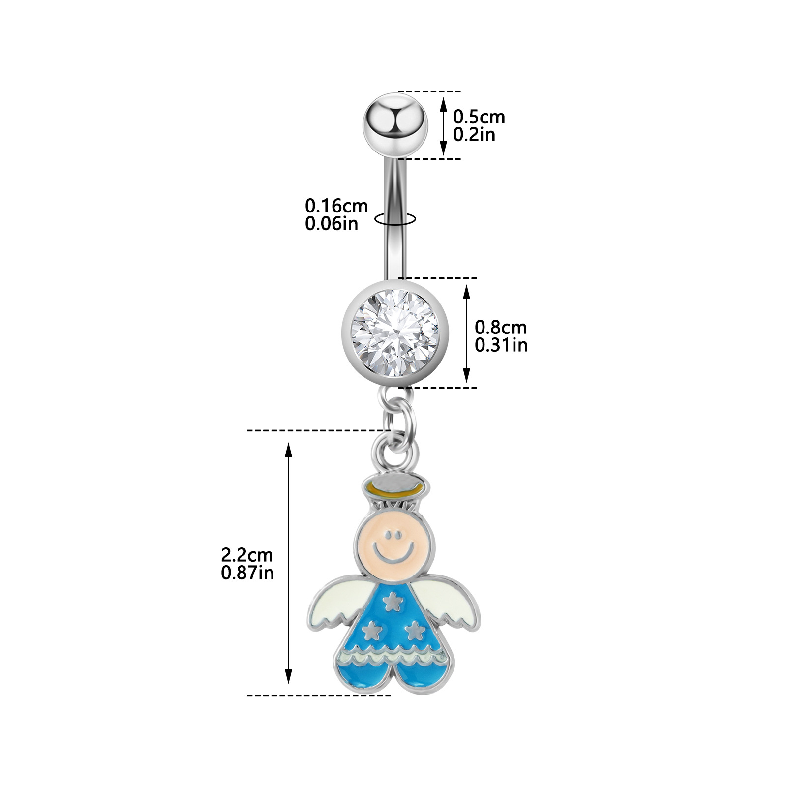 Anneau de ventre en acier inoxydable, Acier inoxydable 304, ange, Placage de couleur argentée, bijoux de mode & émail & avec strass, couleurs mélangées, Vendu par PC