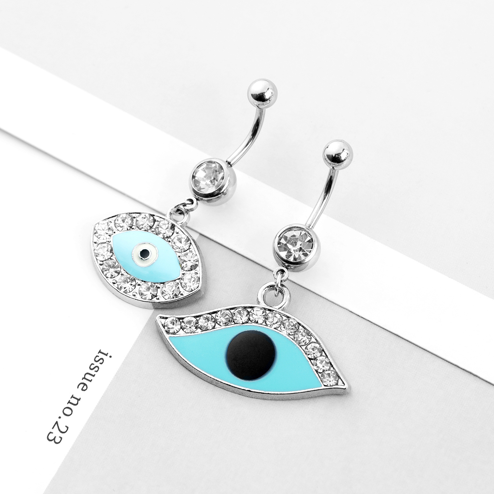 Anneau de ventre en acier inoxydable, Acier inoxydable 304, avec laiton, Placage de couleur argentée, bijoux de mode & émail & avec strass, couleurs mélangées, Vendu par PC