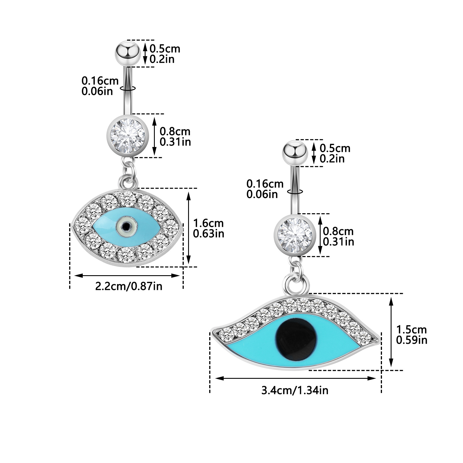 Anneau de ventre en acier inoxydable, acier inoxydable 316L, avec turquoise & cristal, Attrapeur de rêves, pour femme & facettes, plus de couleurs à choisir Vendu par PC