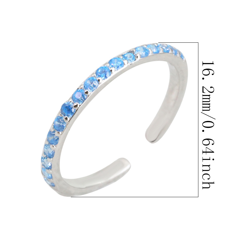 Argent sterling 925 Bague d'orteil, Plaqué de platine, pour femme & avec strass, Taille:5.5, Vendu par PC