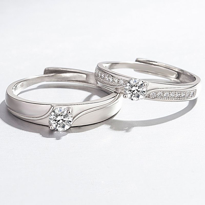 Argent sterling 925 Couple Anneau, réglable & styles différents pour le choix & pour le couple & avec strass, Taille:6-10, Vendu par PC