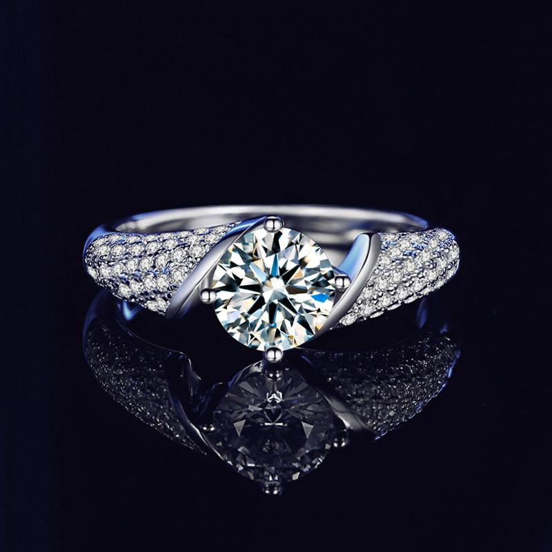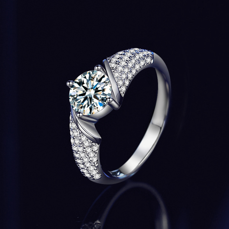 Argent sterling 925 bague, avec Moissanite, Plaqué de platine, normes différentes pour le choix & pour femme, Taille:5-8, Vendu par PC