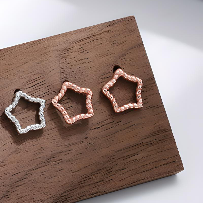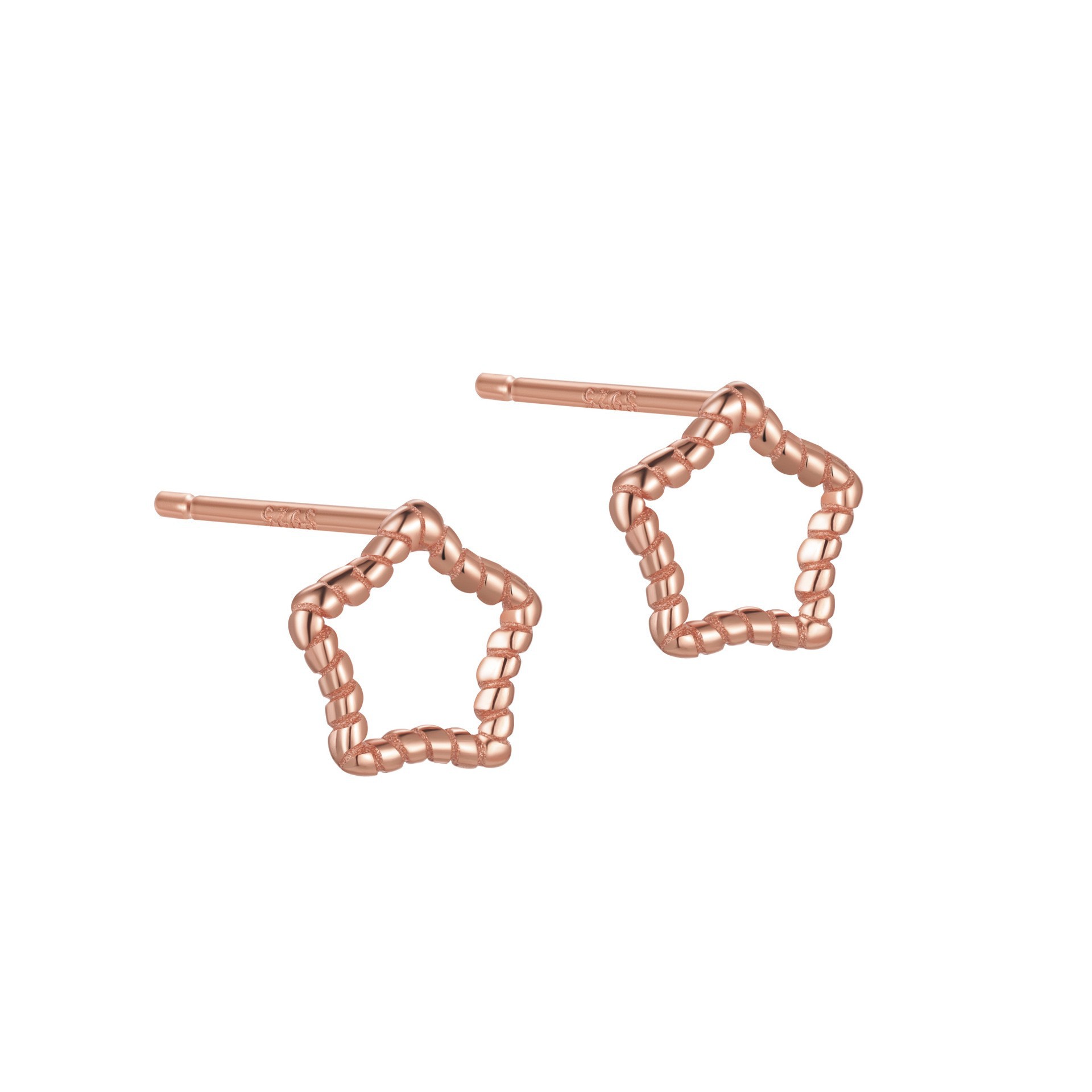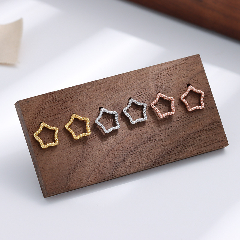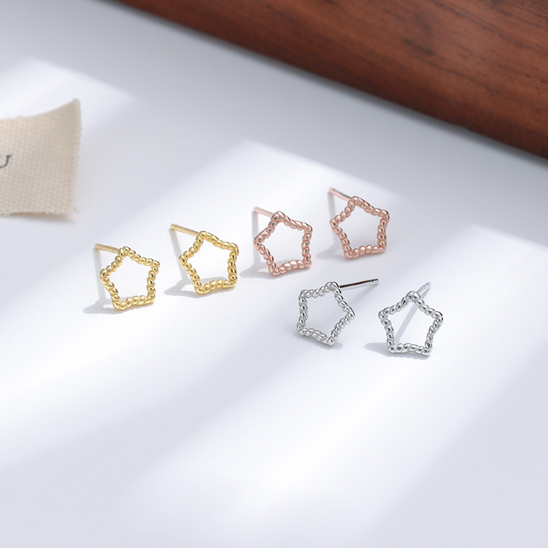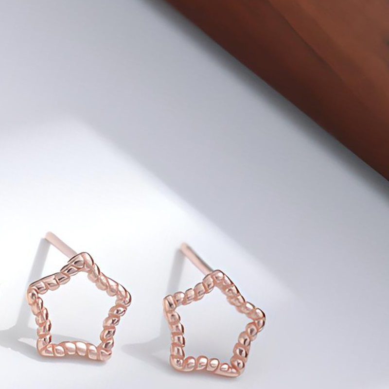 Argent sterling 925 boucle d oreille dormeuse, étoile, Plaqué de couleur d'or rose, pour femme & creux, earring length 10-15mm, Vendu par paire