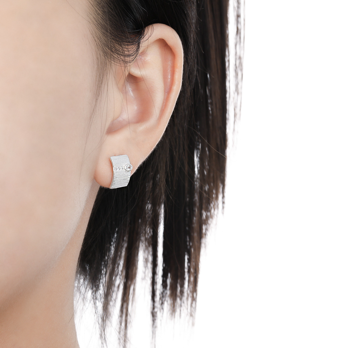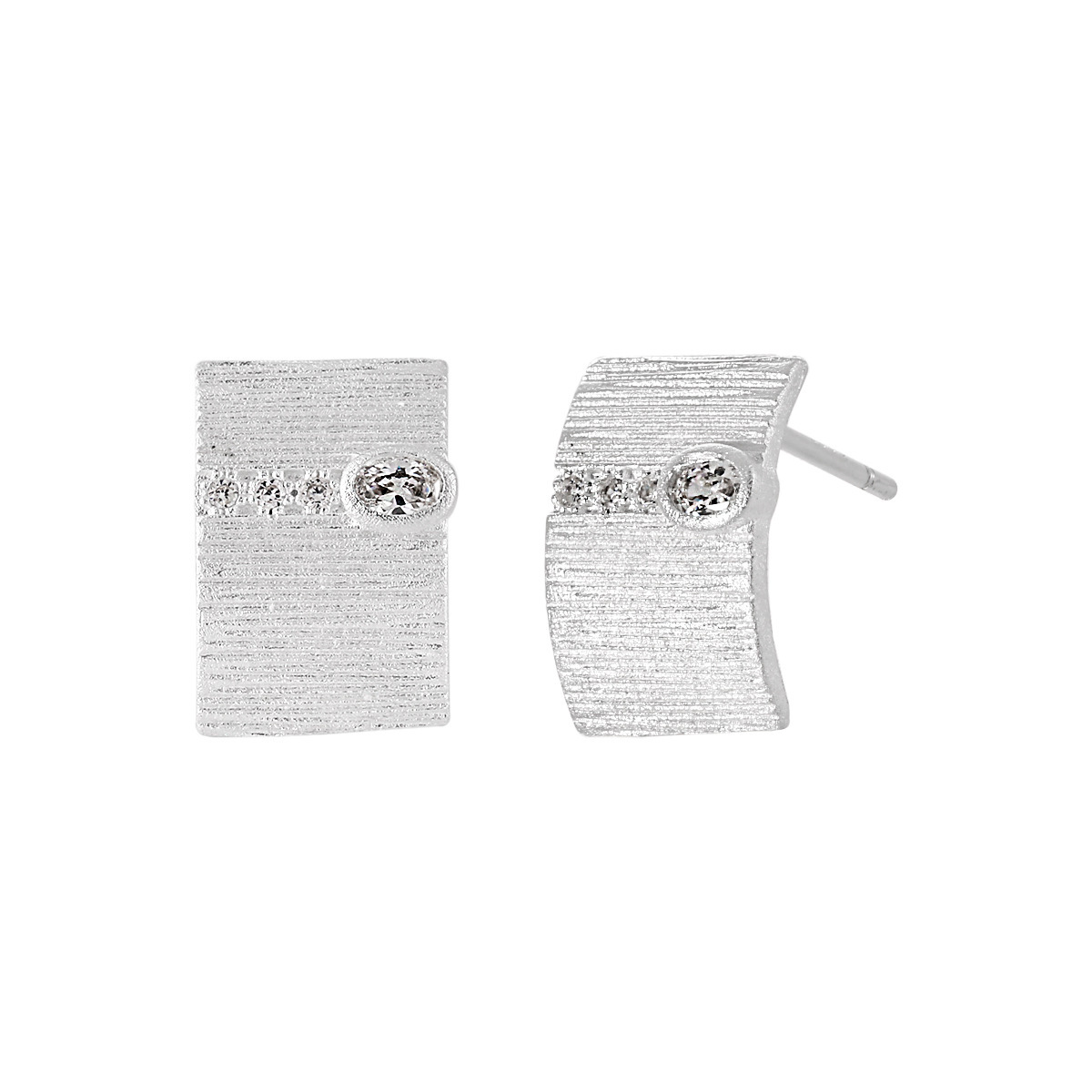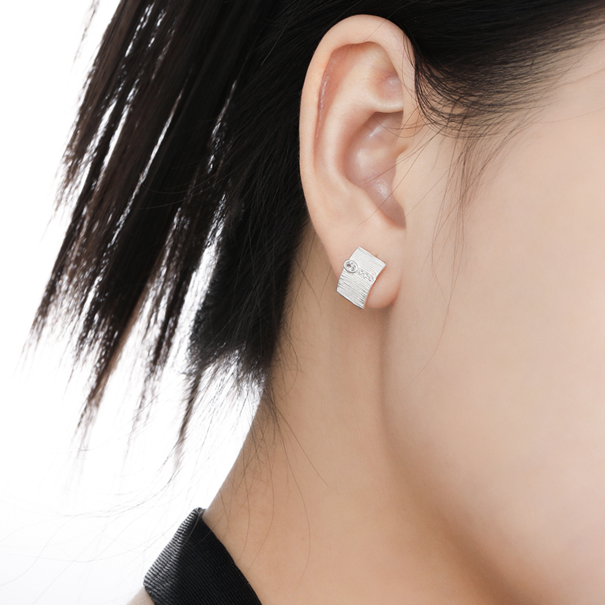 Argent sterling 925 boucle d oreille dormeuse, Motif géométrique, pavé de micro zircon & pour femme, argent, 8.2x12mm, Vendu par paire