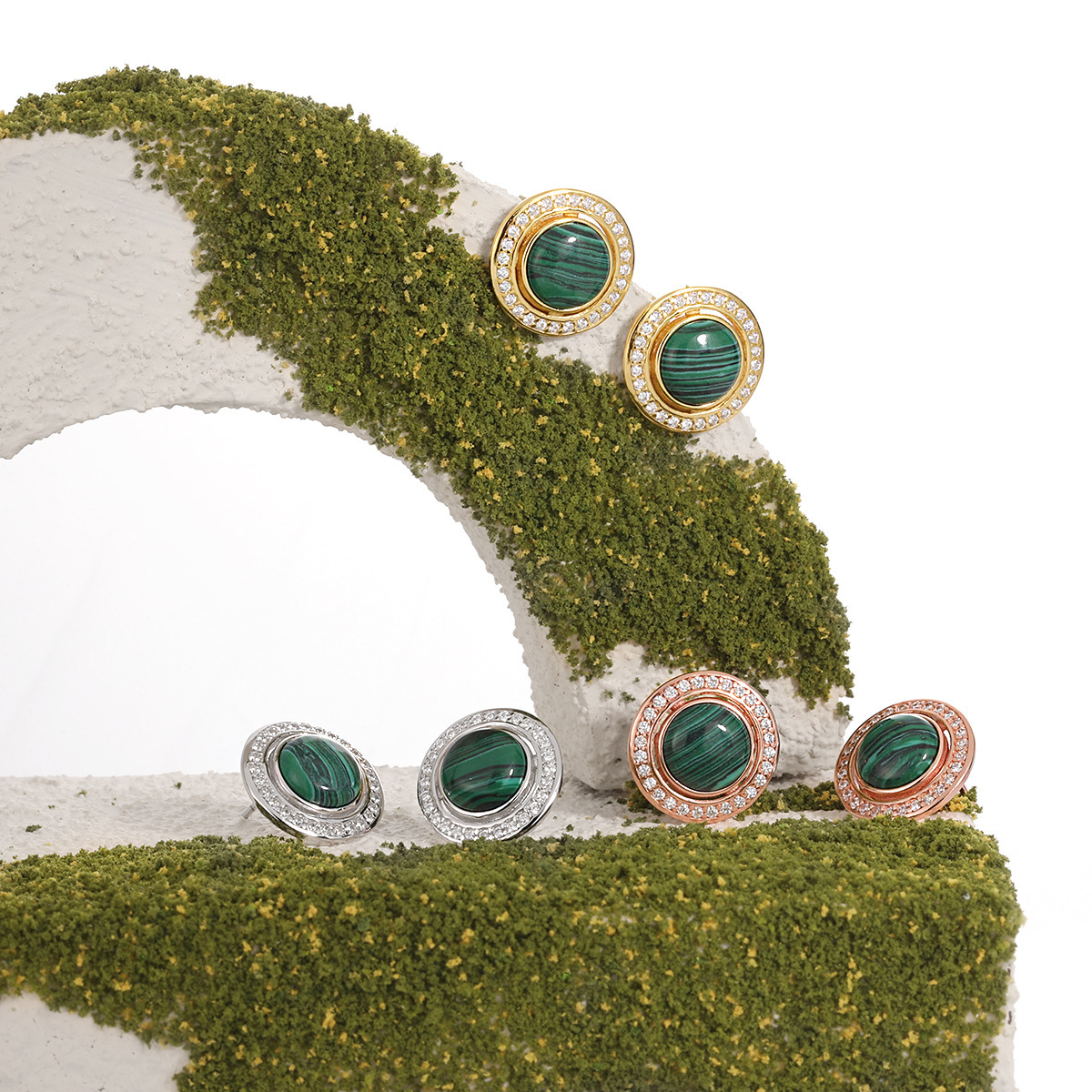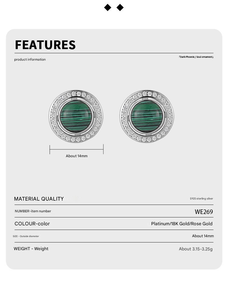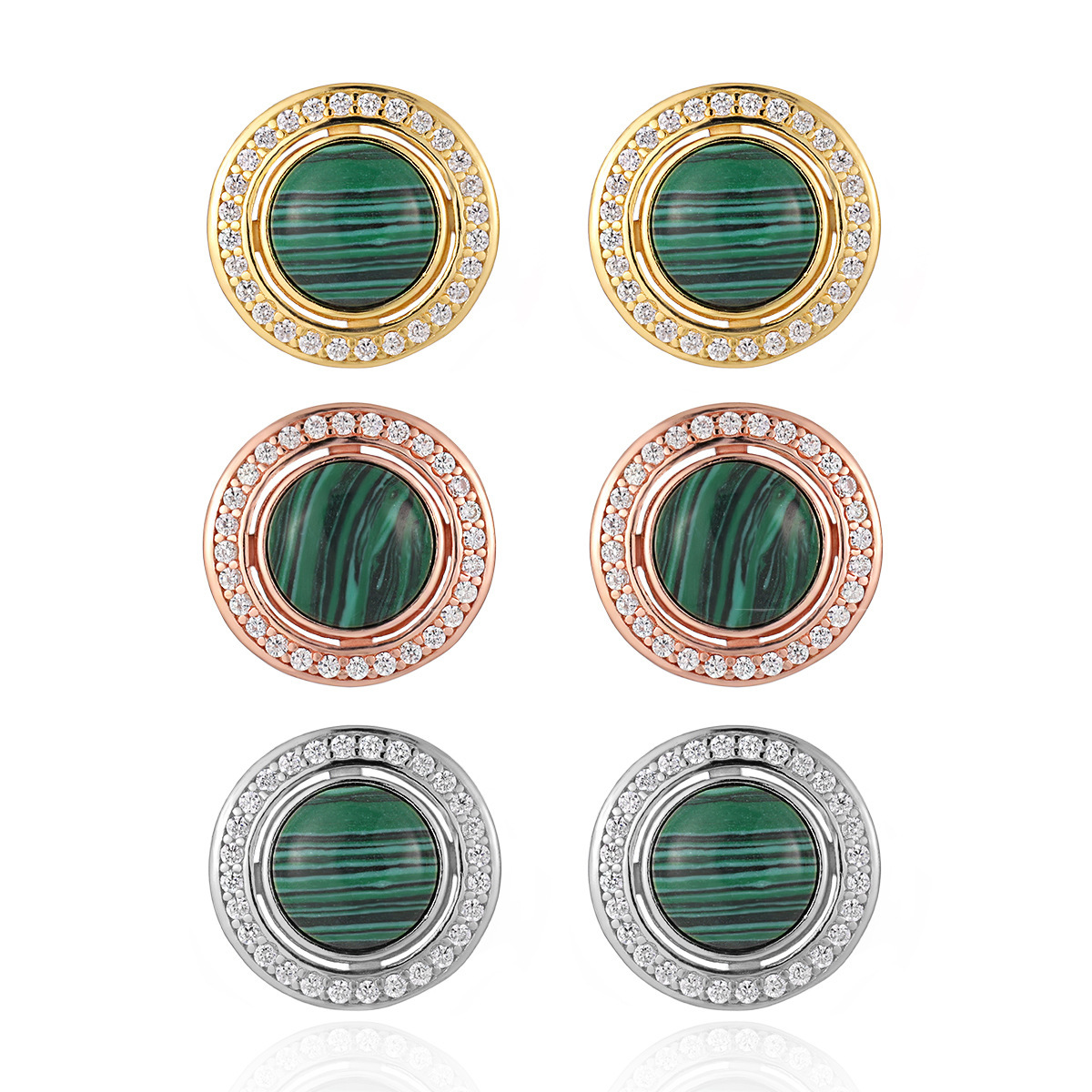 Argent sterling 925 boucle d oreille dormeuse, avec Malachite, Rond, pour femme & avec strass, plus de couleurs à choisir, 14mm, Vendu par paire