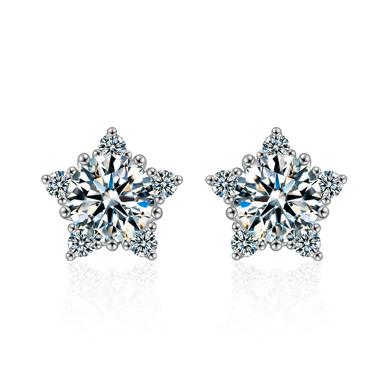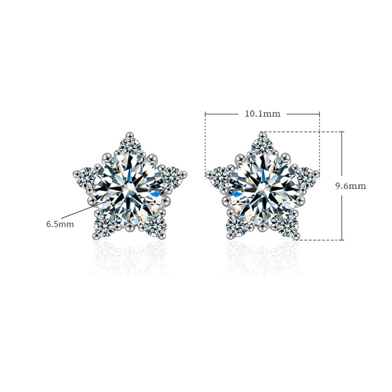 Argent sterling 925 boucle d oreille dormeuse, avec Moissanite, étoile, bijoux de mode & pour femme, plus de couleurs à choisir, 10.1x9.6mm, Vendu par paire