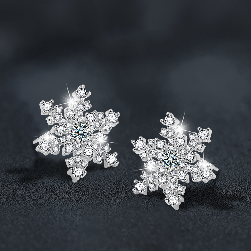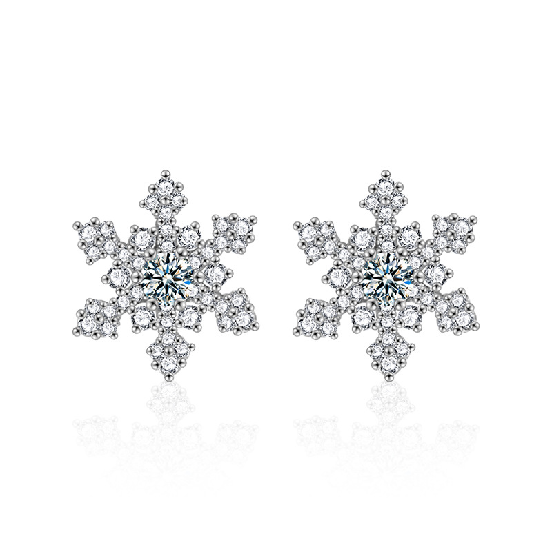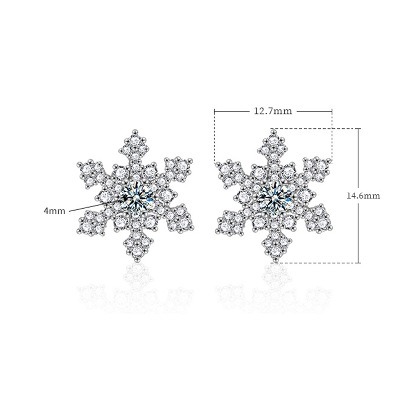 Argent sterling 925 boucle d oreille dormeuse, avec Moissanite, flocon de neige, Plaqué de platine, bijoux de mode & pour femme, 12.7x14.6mm, Vendu par paire