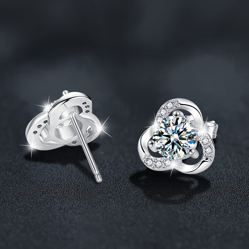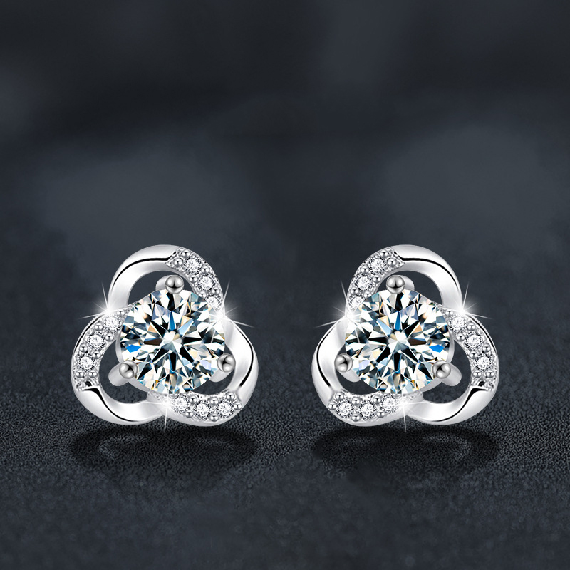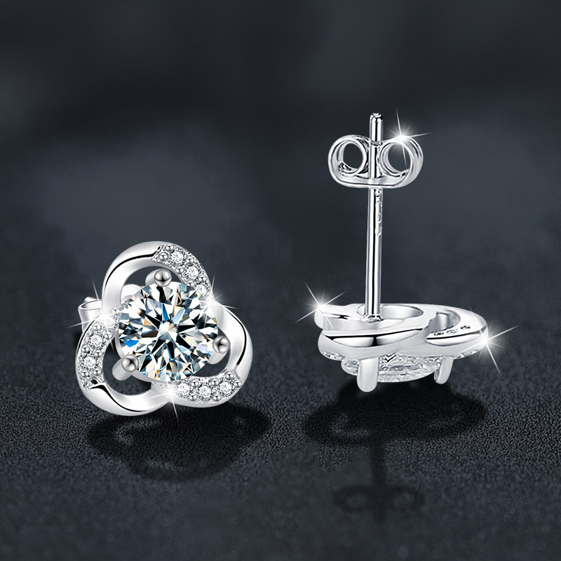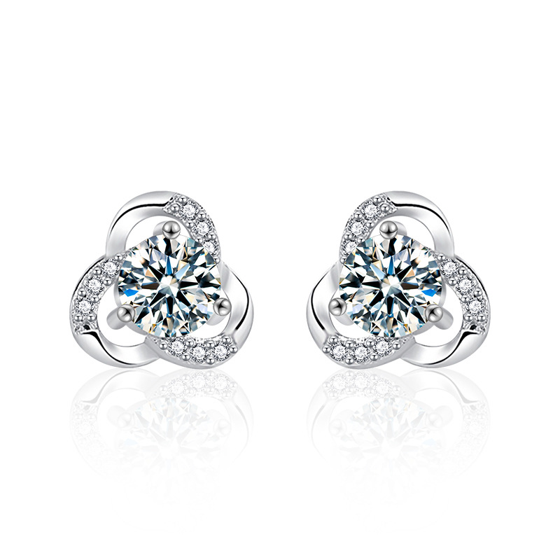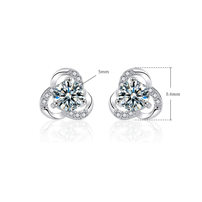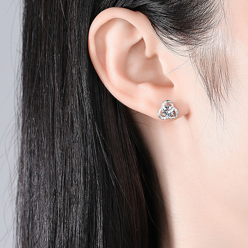 Argent sterling 925 boucle d oreille dormeuse, avec Moissanite, Trois Clover Leaf, Plaqué de platine, bijoux de mode & pour femme, 8.6mm, Vendu par paire