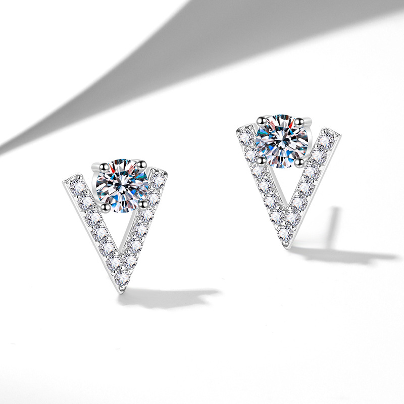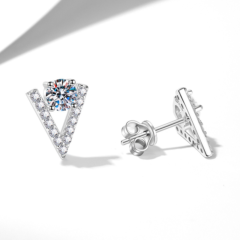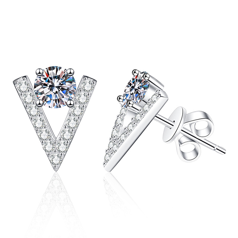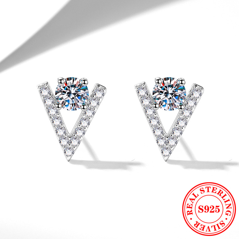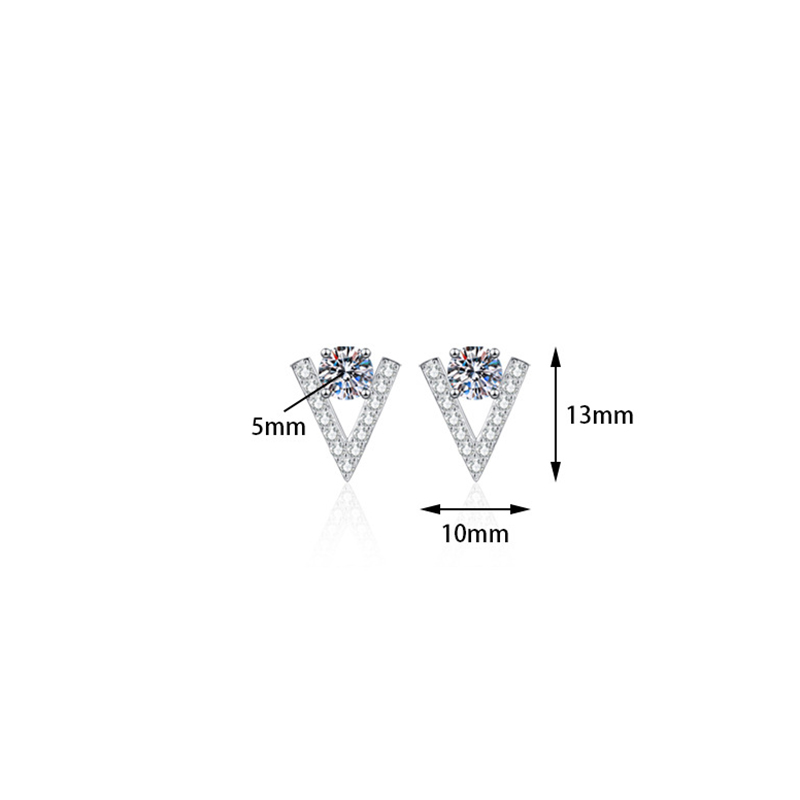 Argent sterling 925 boucle d oreille dormeuse, Lettre V, Plaqué de platine, différents matériaux pour le choix & pavé de micro zircon & pour femme, Vendu par paire