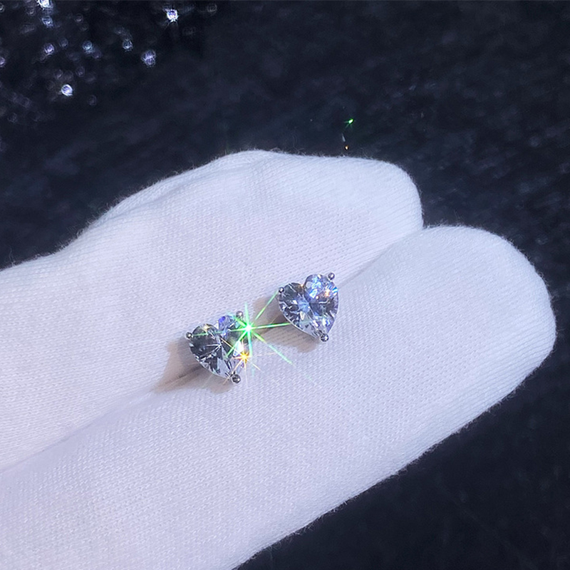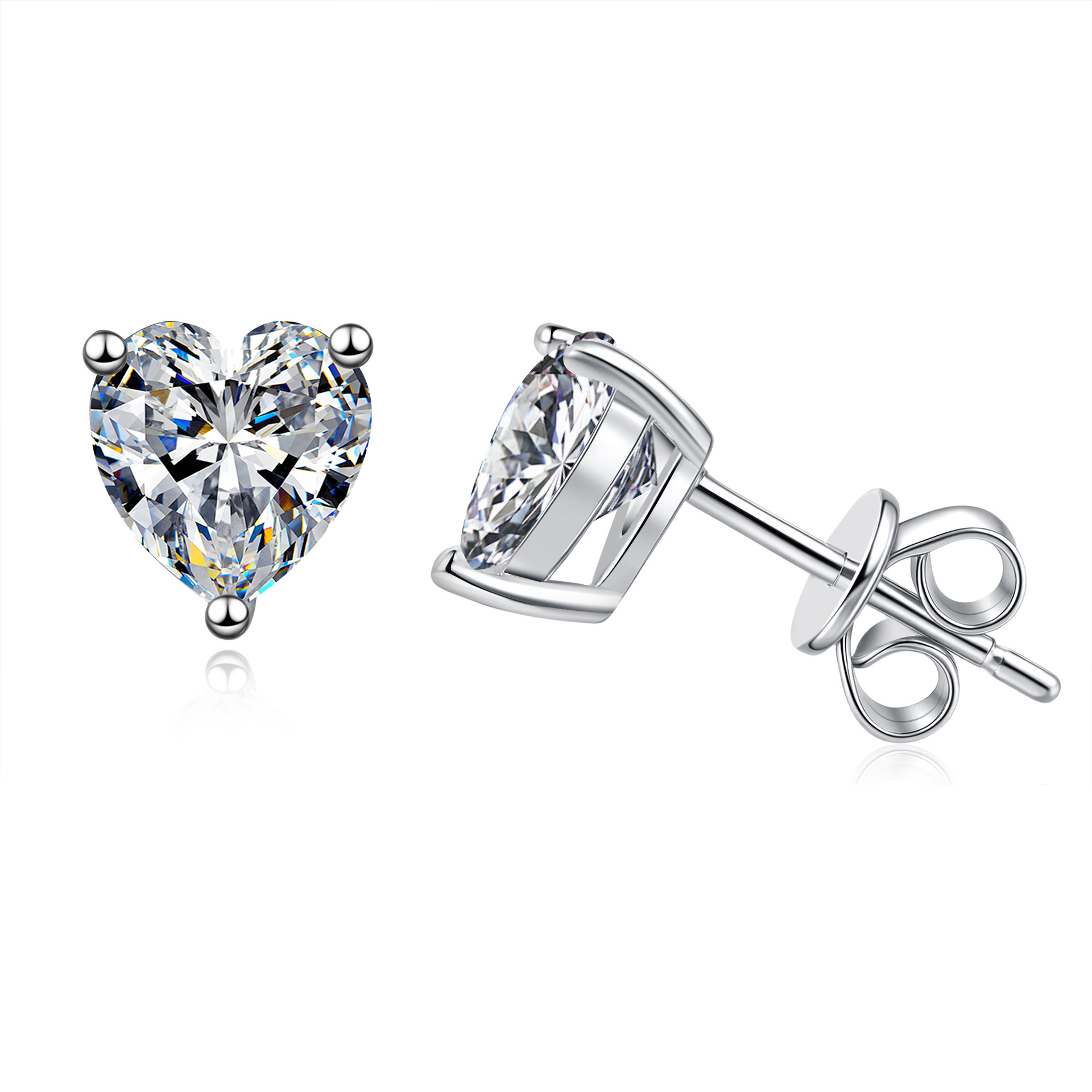 Argent sterling 925 boucle d oreille dormeuse, coeur, Plaqué de platine, différents matériaux pour le choix & pour femme, Vendu par paire
