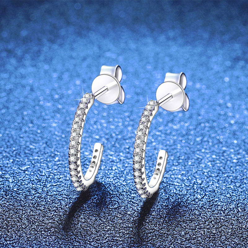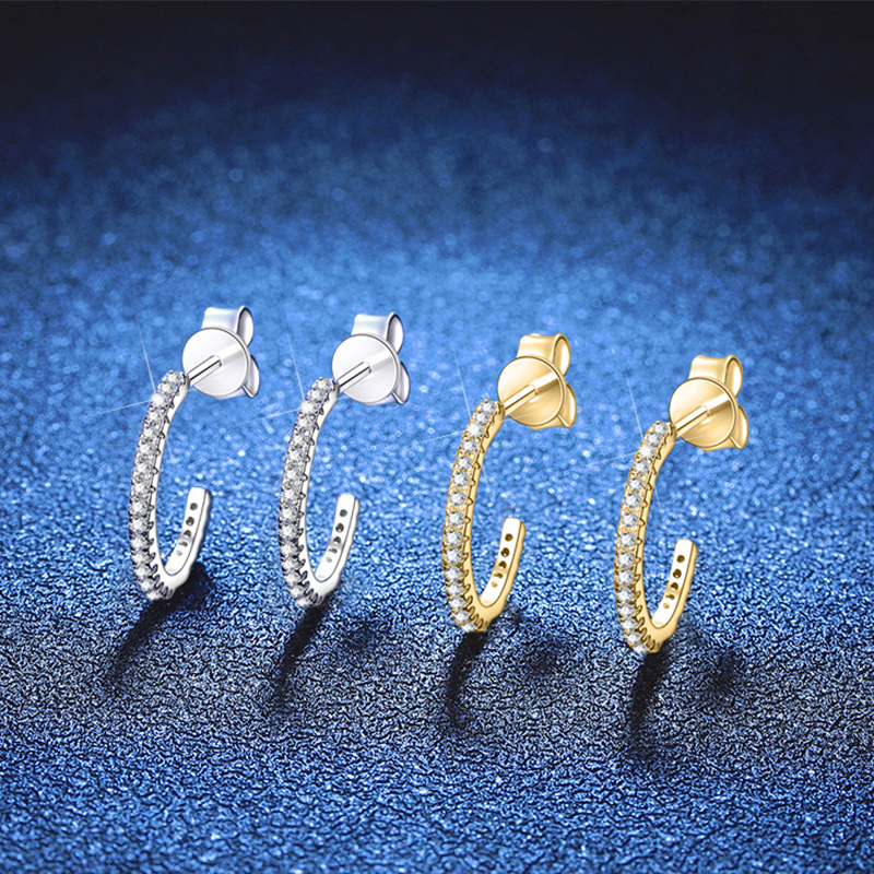 Argent sterling 925 boucle d oreille dormeuse, avec Moissanite, Lettre C, bijoux de mode & pour femme, plus de couleurs à choisir, 15mm, Vendu par paire