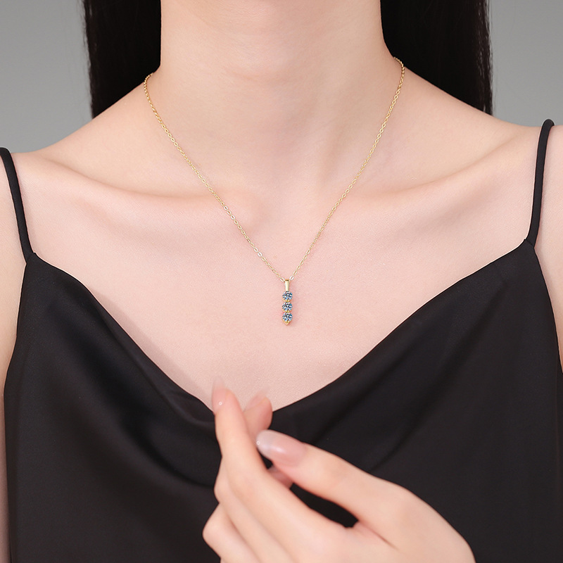 Argent sterling 925 collier, avec Moissanite, avec 2inch chaînes de rallonge, Placage de couleur d'or, Chaîne transversale & pour femme, Longueur:Environ 15.7 pouce, Vendu par PC