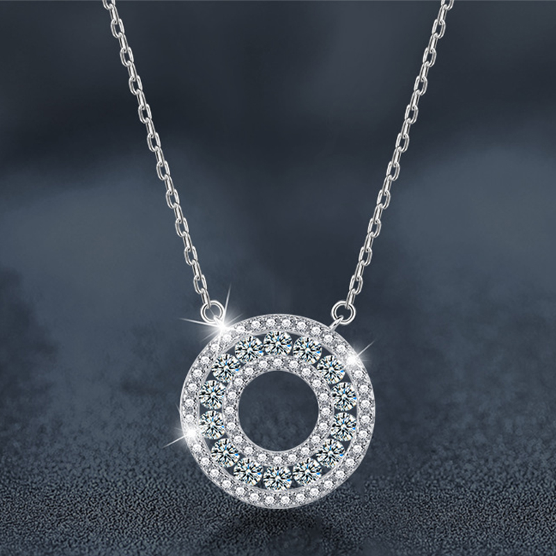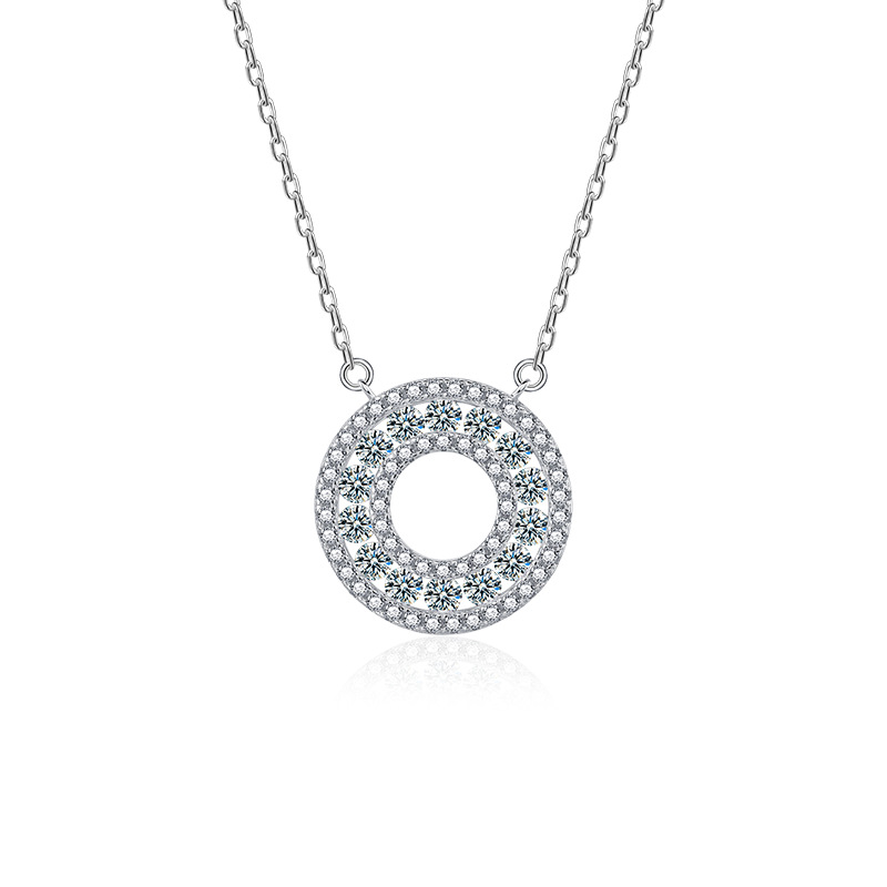 Argent sterling 925 collier, avec Moissanite, avec 2inch chaînes de rallonge, beignet, Plaqué de platine, Chaîne transversale & pour femme, Longueur:Environ 15.7 pouce, Vendu par PC