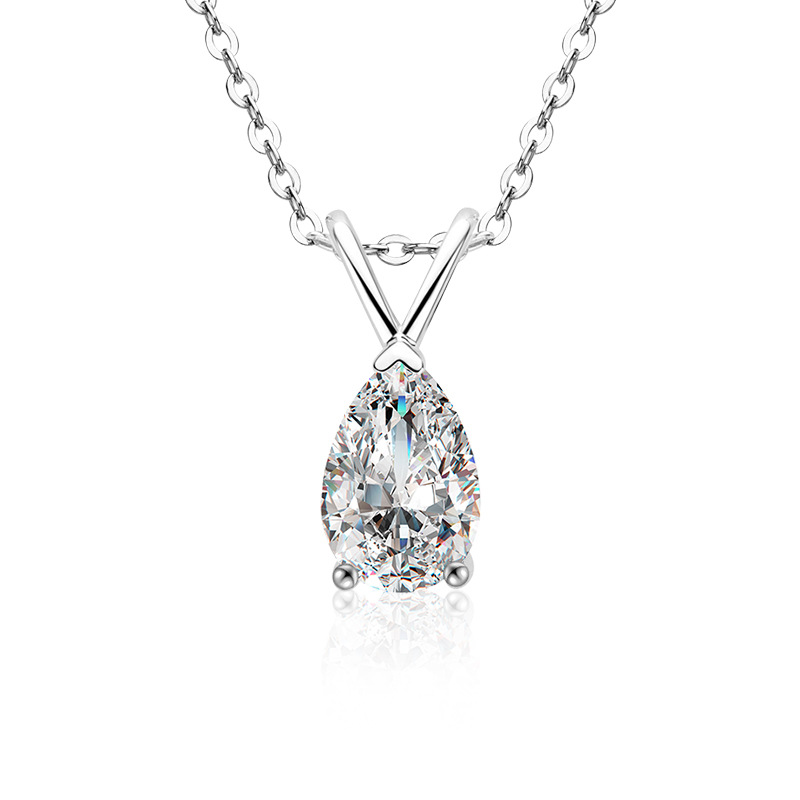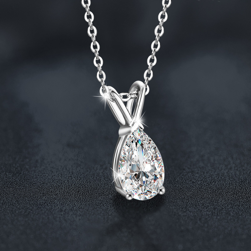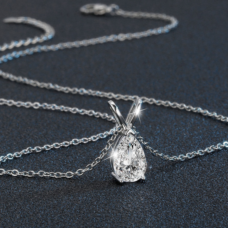 Argent sterling 925 collier, avec Moissanite, avec 2inch chaînes de rallonge, larme, Chaîne transversale & pour femme, plus de couleurs à choisir, Longueur:Environ 15.7 pouce, Vendu par PC