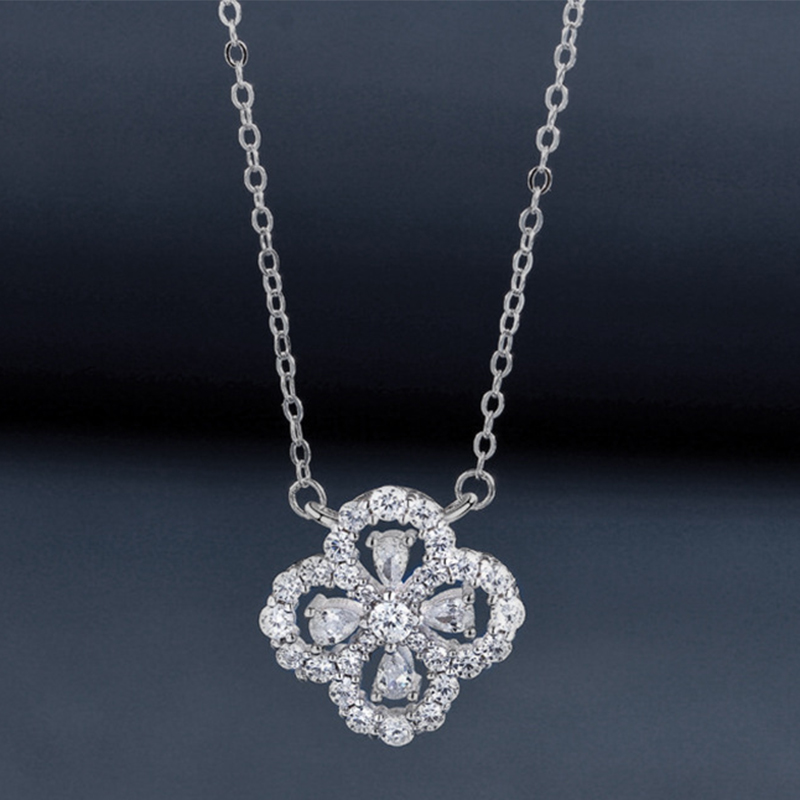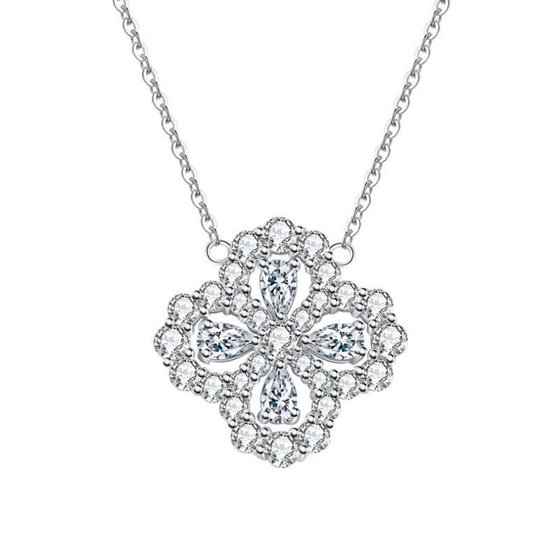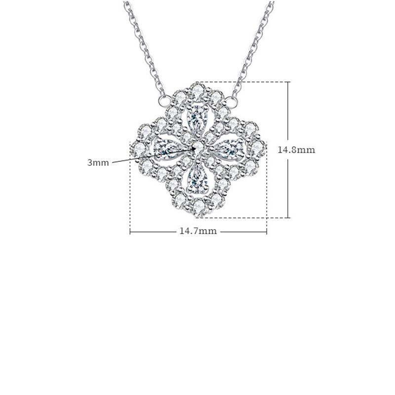 Argent sterling 925 collier, avec Moissanite, avec 2inch chaînes de rallonge, Trèfle à quatre feuilles, Plaqué de platine, Chaîne transversale & pour femme, Longueur:Environ 15.7 pouce, Vendu par PC