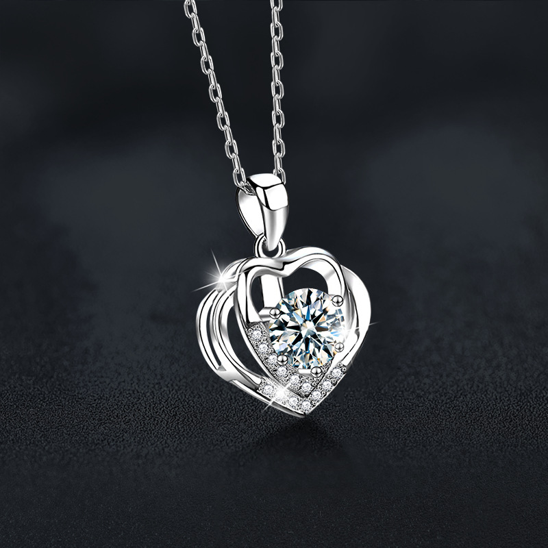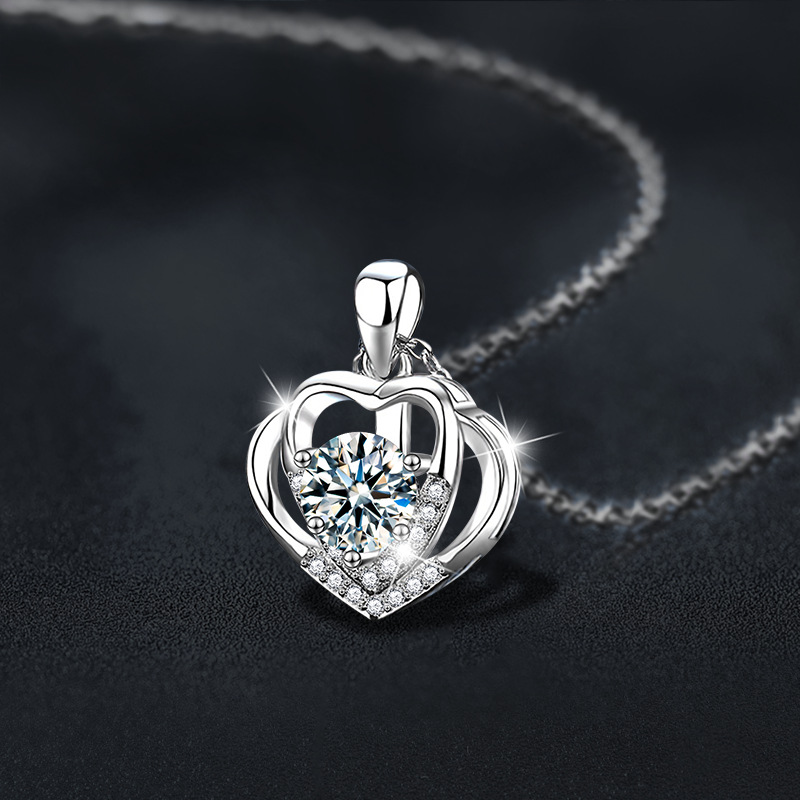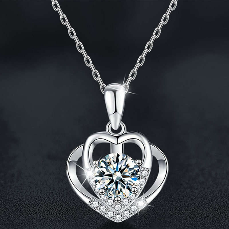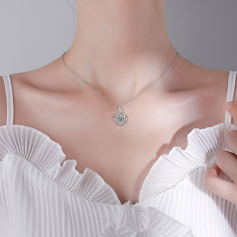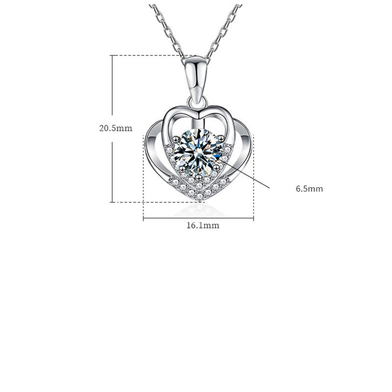 Argent sterling 925 collier, avec Moissanite, avec 2inch chaînes de rallonge, coeur, Plaqué de platine, Chaîne transversale & pour femme, Longueur:Environ 15.7 pouce, Vendu par PC