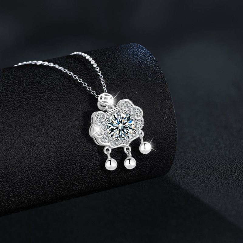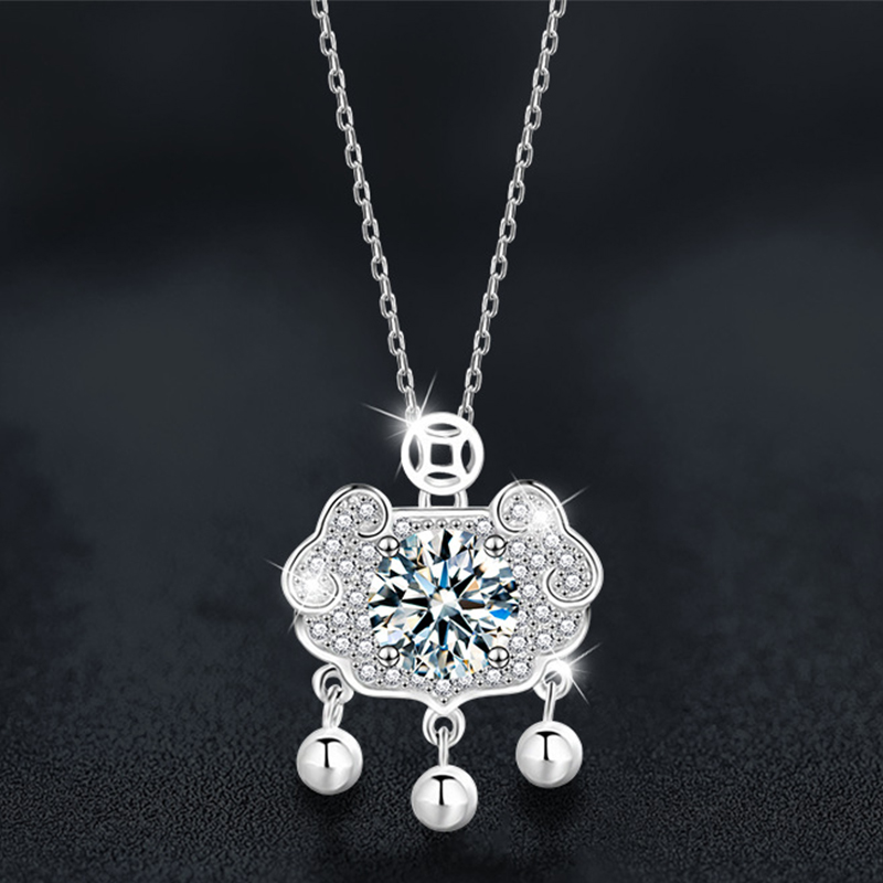 Argent sterling 925 collier, avec Moissanite, avec 2inch chaînes de rallonge, La longévité de verrouillage, Plaqué de platine, Chaîne transversale & pour femme, Longueur:Environ 15.7 pouce, Vendu par PC