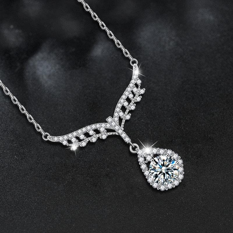 Argent sterling 925 collier, avec Moissanite, avec 2inch chaînes de rallonge, larme, Plaqué de platine, Chaîne transversale & pour femme, Longueur:Environ 15.7 pouce, Vendu par PC