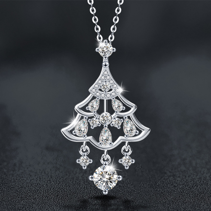 Argent sterling 925 collier, avec 2inch chaînes de rallonge, arbre de noël, Plaqué de platine, Chaîne transversale & pour femme, Longueur:Environ 15.7 pouce, Vendu par PC