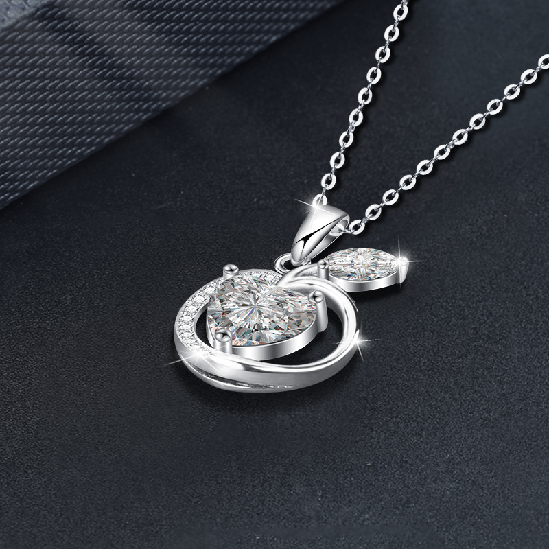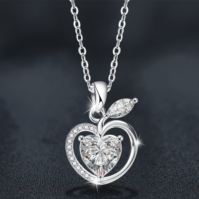 Argent sterling 925 collier, avec Moissanite, avec 2inch chaînes de rallonge, pomme, Plaqué de platine, Chaîne transversale & pour femme, Longueur:Environ 15.7 pouce, Vendu par PC