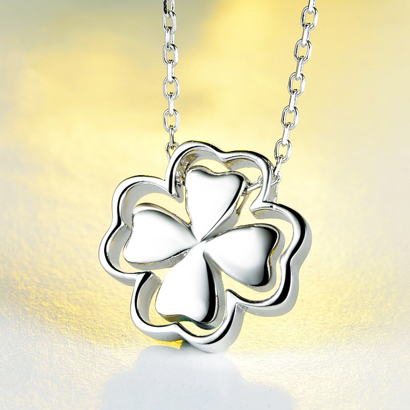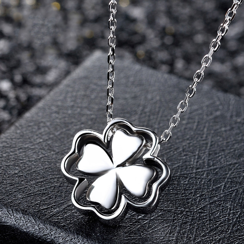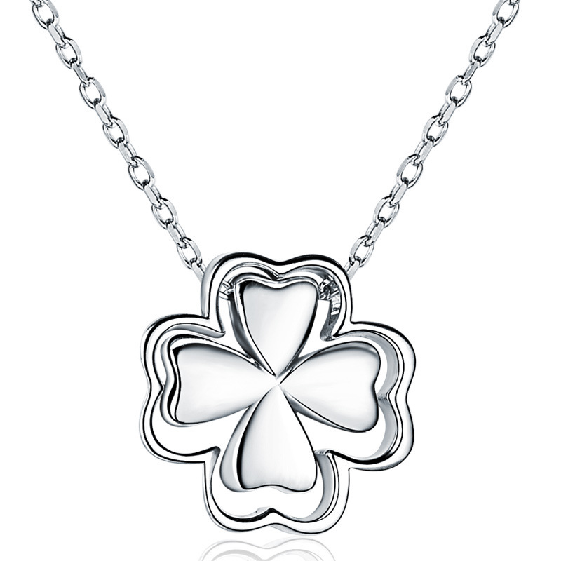 Argent sterling 925 collier, Trèfle à quatre feuilles, bijoux de mode & pour femme, Longueur:Environ 16-20 pouce, Vendu par PC