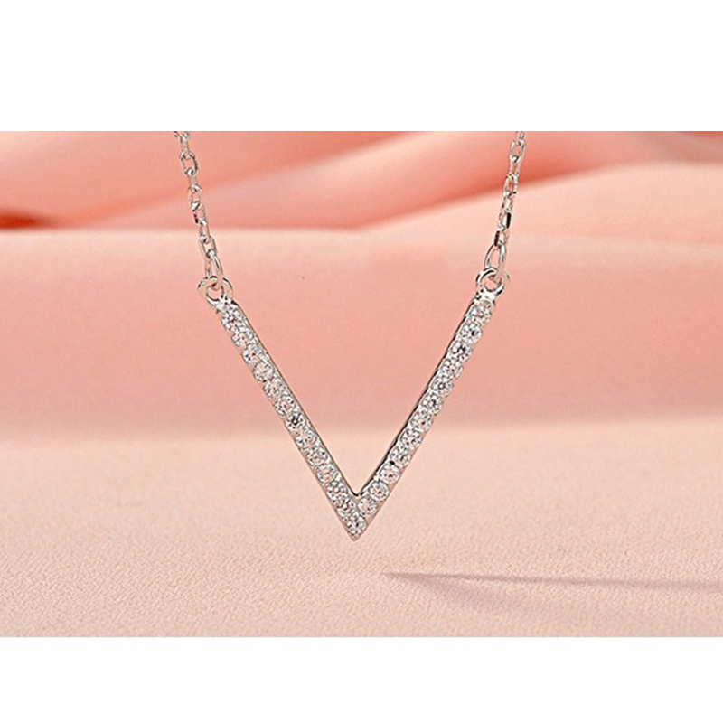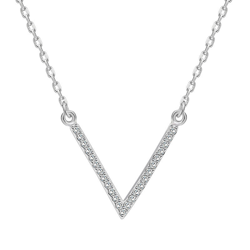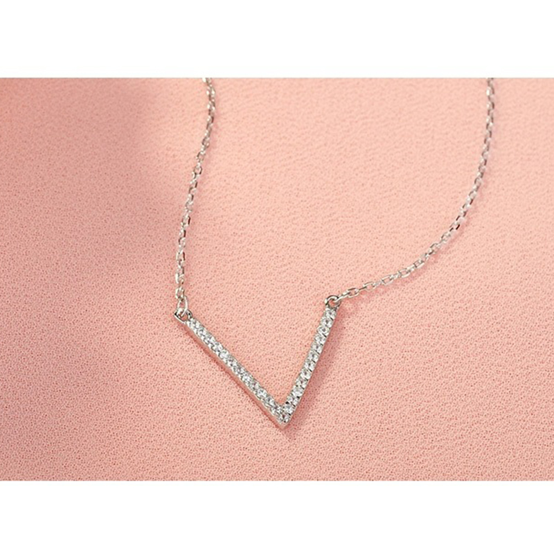 Argent sterling 925 collier, Lettre V, pour femme & avec strass, Longueur:Environ 16-20 pouce, Vendu par PC