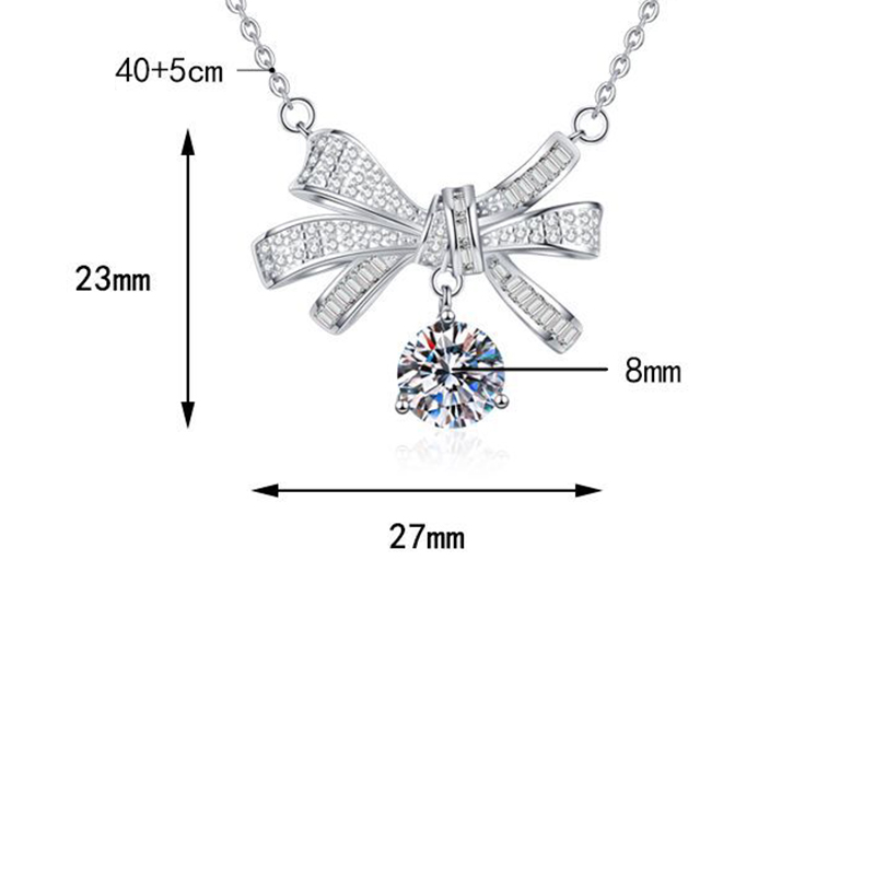 Argent sterling 925 collier, avec 2inch chaînes de rallonge, Noeud papillon, Plaqué de platine, Chaîne transversale & différents matériaux pour le choix & pour femme, Longueur:Environ 15.7 pouce, Vendu par PC