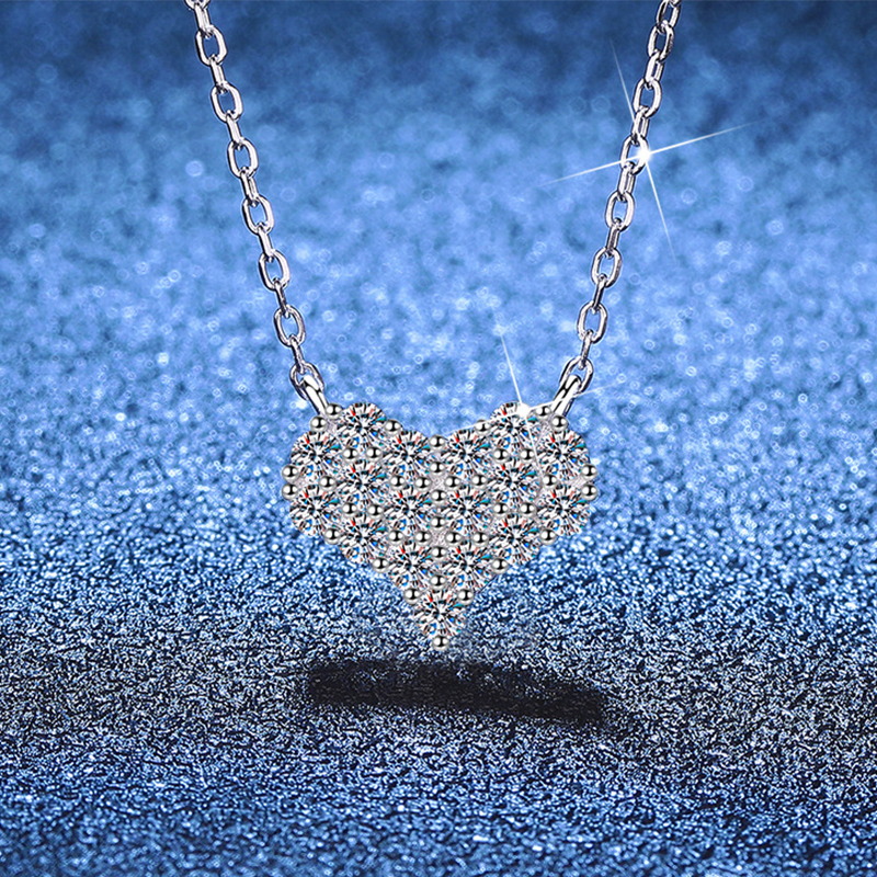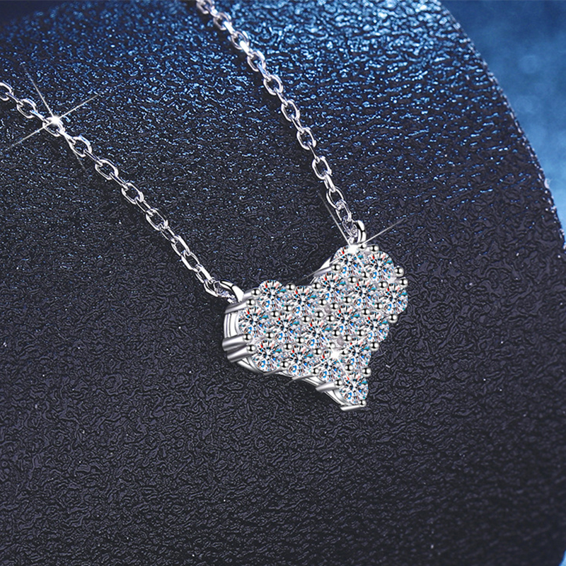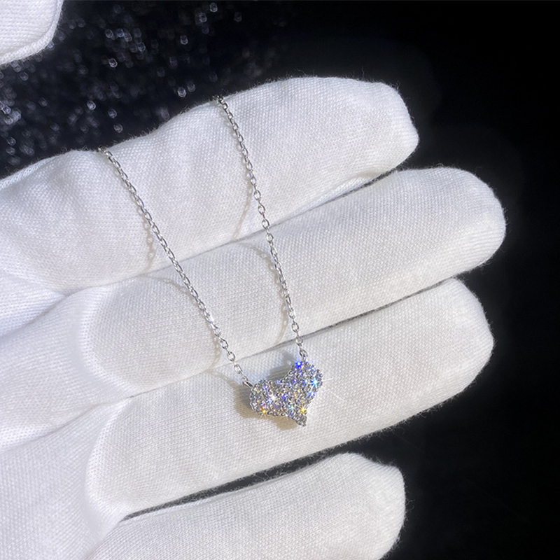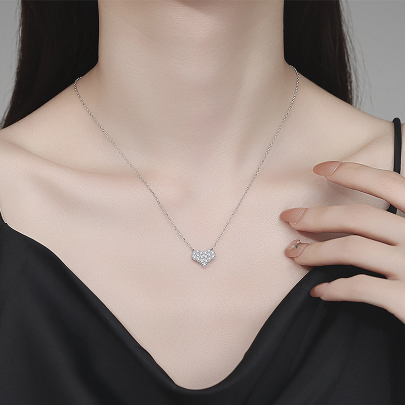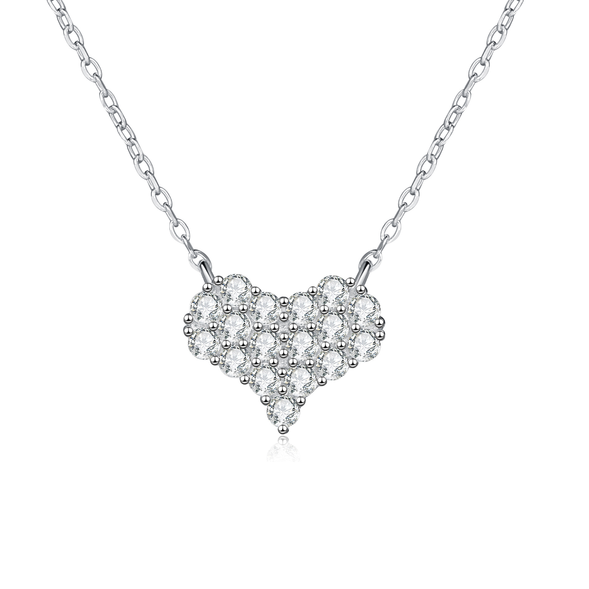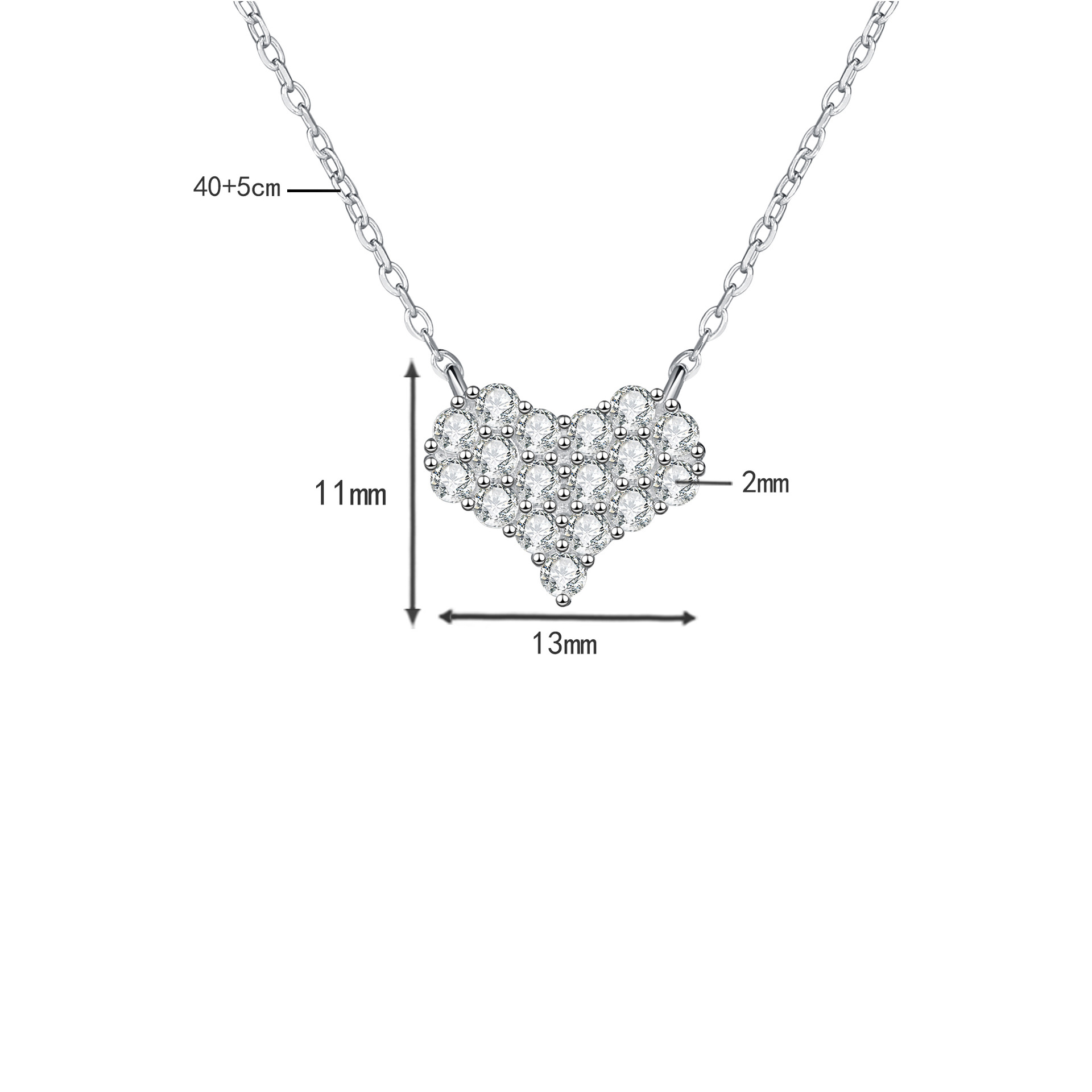 Argent sterling 925 collier, avec Moissanite, avec 2inch chaînes de rallonge, coeur, Plaqué de platine, Chaîne transversale & pour femme, Longueur:Environ 15.7 pouce, Vendu par PC