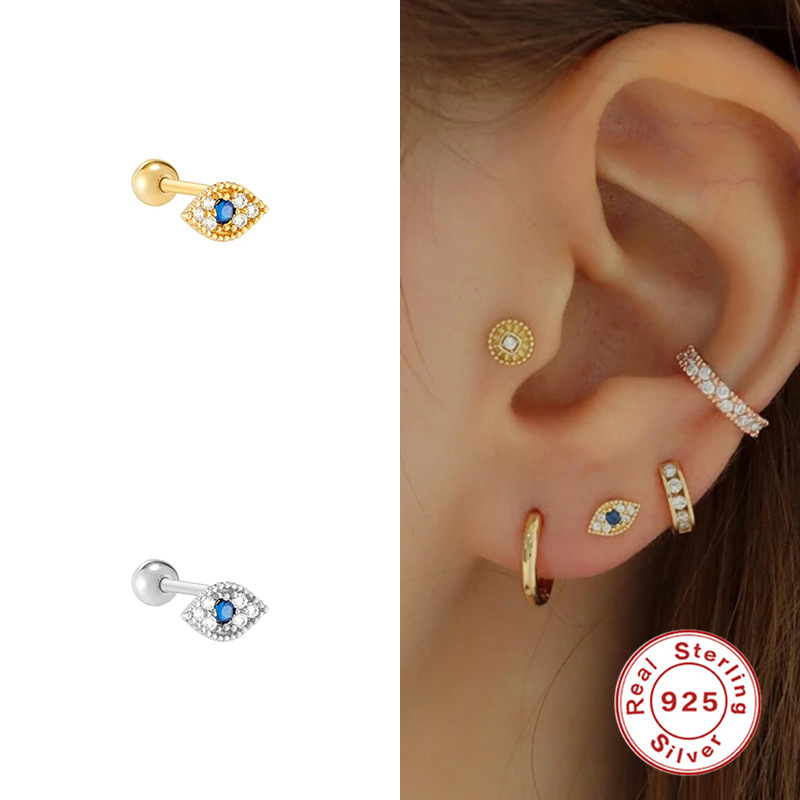 Argent sterling 925 piercing oreille, Mauvais œil, pour femme & avec strass, plus de couleurs à choisir, 8x1.2mm, Vendu par PC