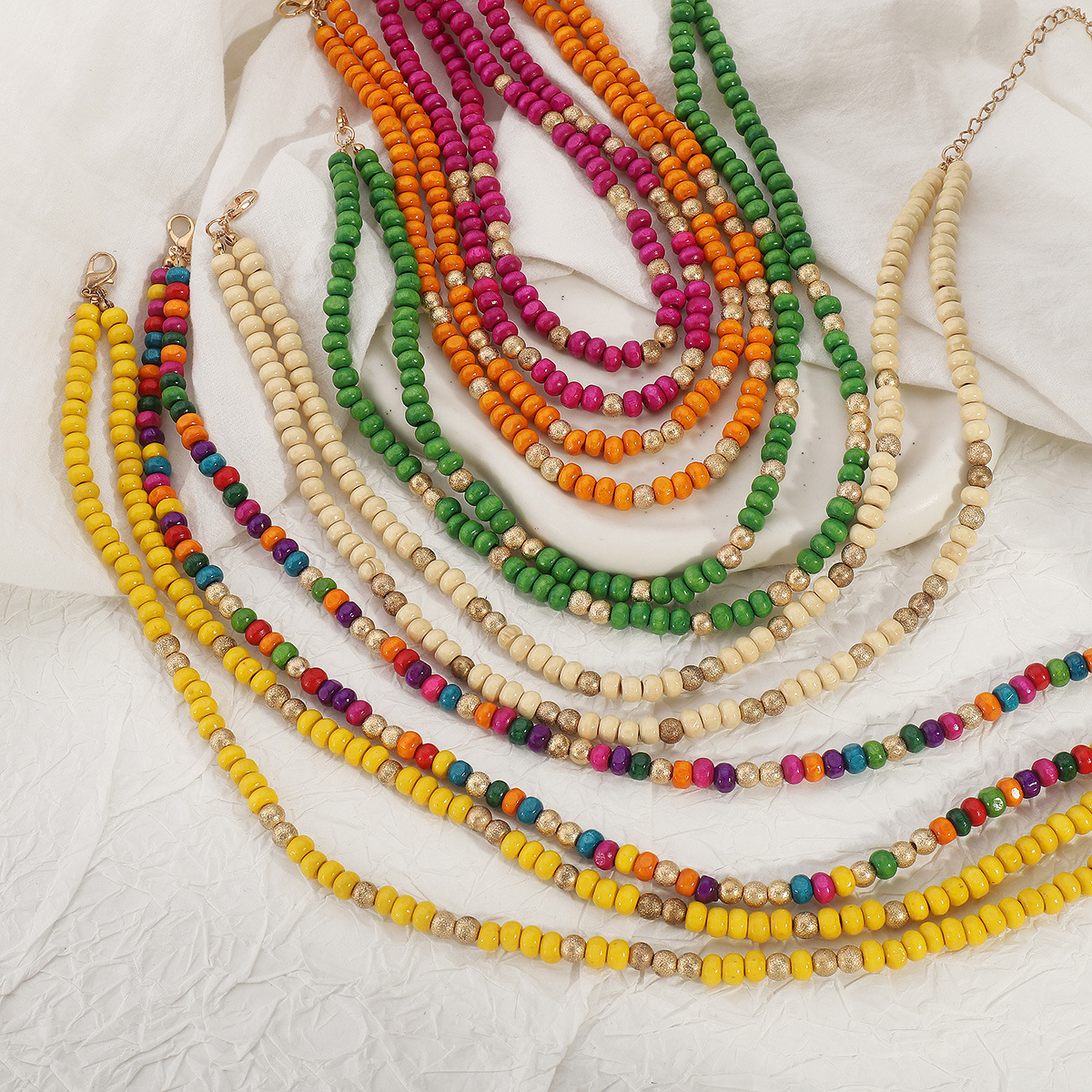 BCC Bijoux Collier, bois, avec plastique revêtu de cuivre, fait à la main, Double couche & bijoux de mode & pour femme, plus de couleurs à choisir, Vendu par PC