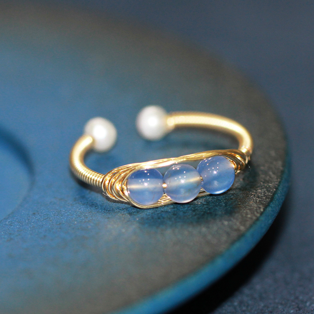 Bague de perle de culture d'eau douce, laiton, avec aigue-marine & perle d'eau douce cultivée, bijoux de mode & pour femme, doré, 4mm, Vendu par PC
