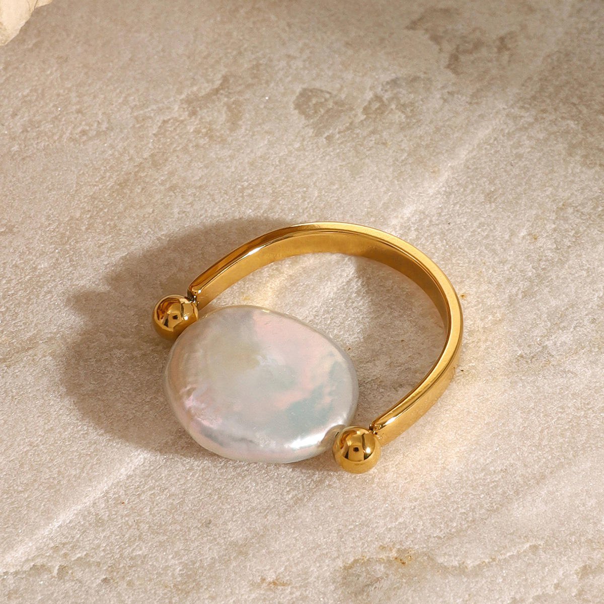 Bague de perle de culture d'eau douce, Acier inoxydable 304, avec perle d'eau douce cultivée, Placage, bijoux de mode & pour femme, doré, Vendu par PC