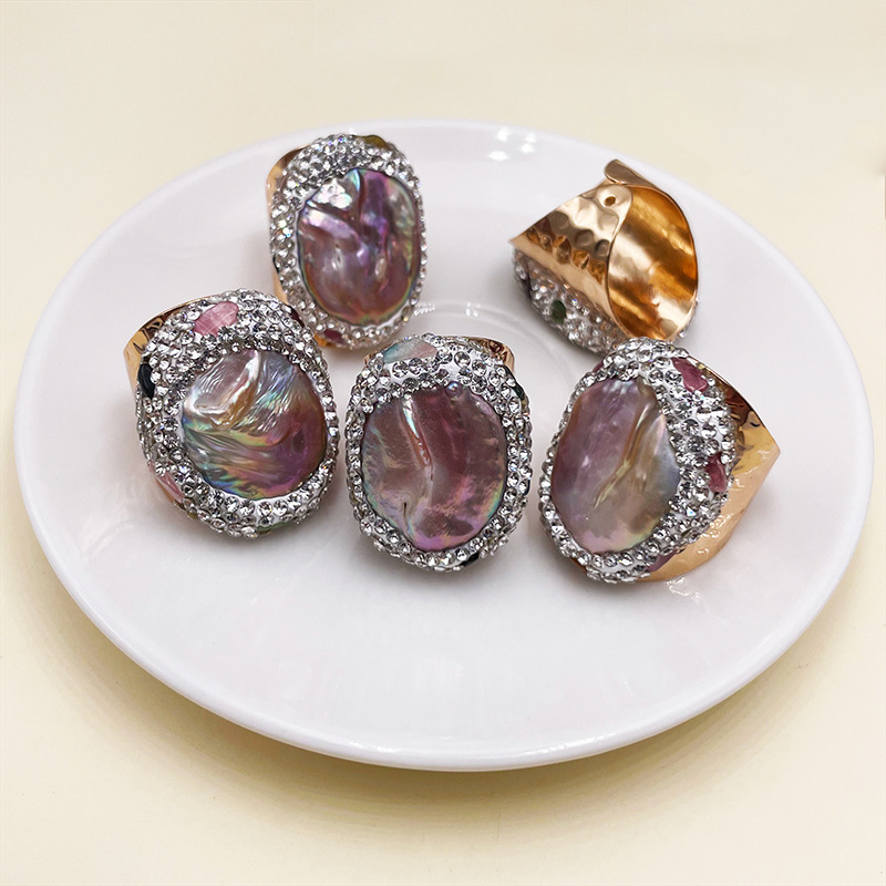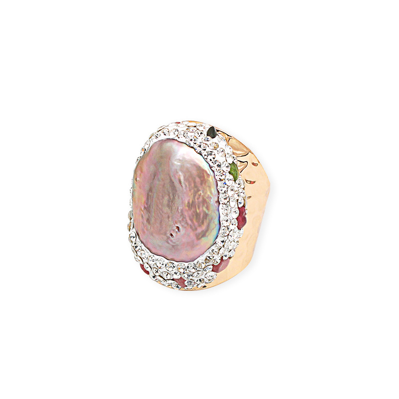 Bague de perle de culture d'eau douce, laiton, avec perle d'eau douce cultivée, Placage de couleur d'or, Réglable & pour femme & avec strass, inner diameter:17~20mm, Vendu par PC