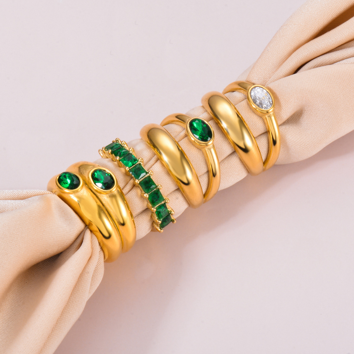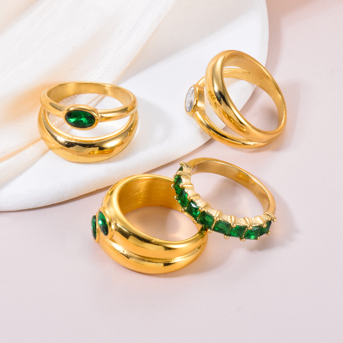 Bague en acier inoxydable Incrusté de zircon, Acier inoxydable 304, Placage de couleur d'or, styles différents pour le choix & pavé de micro zircon & pour femme, plus de couleurs à choisir, Vendu par PC