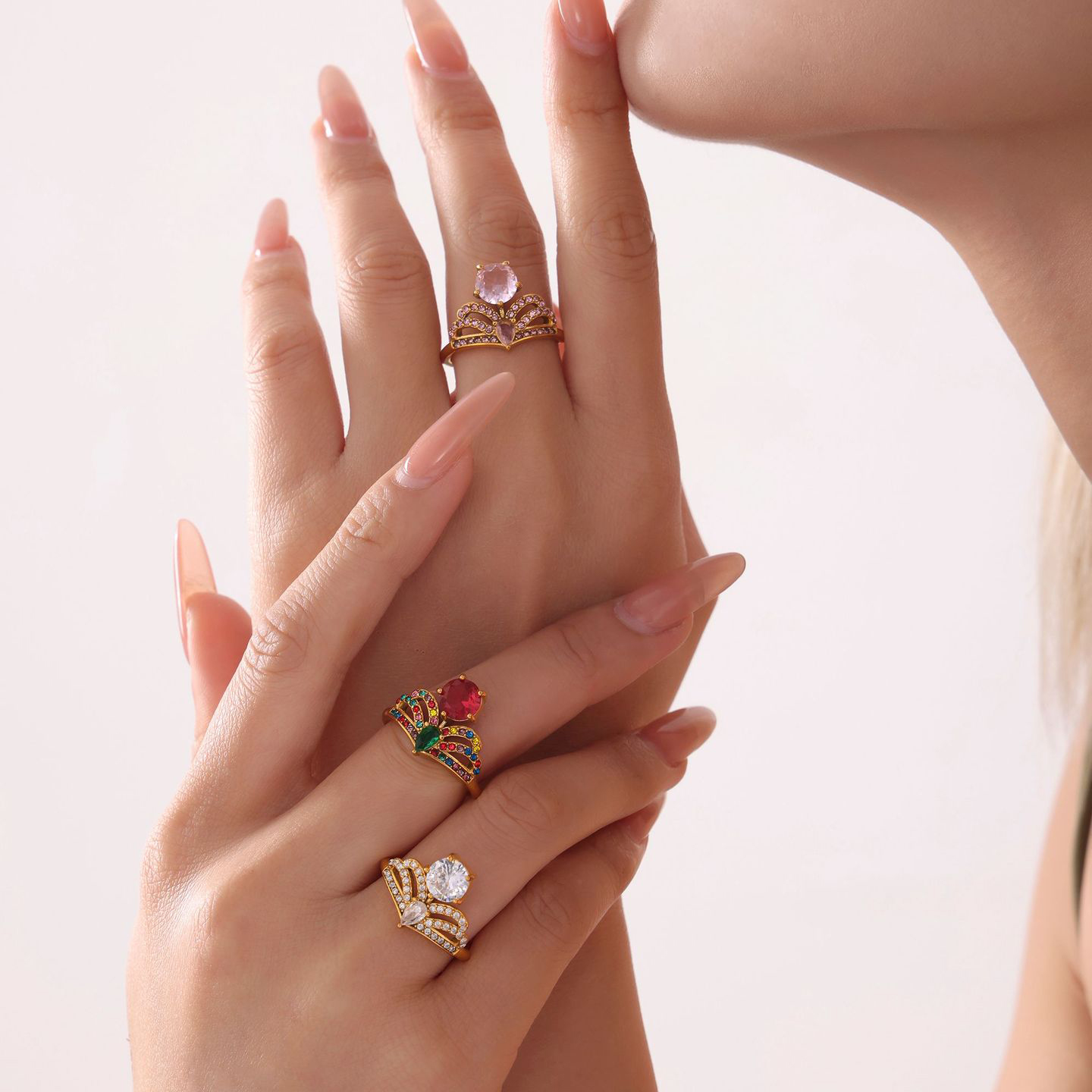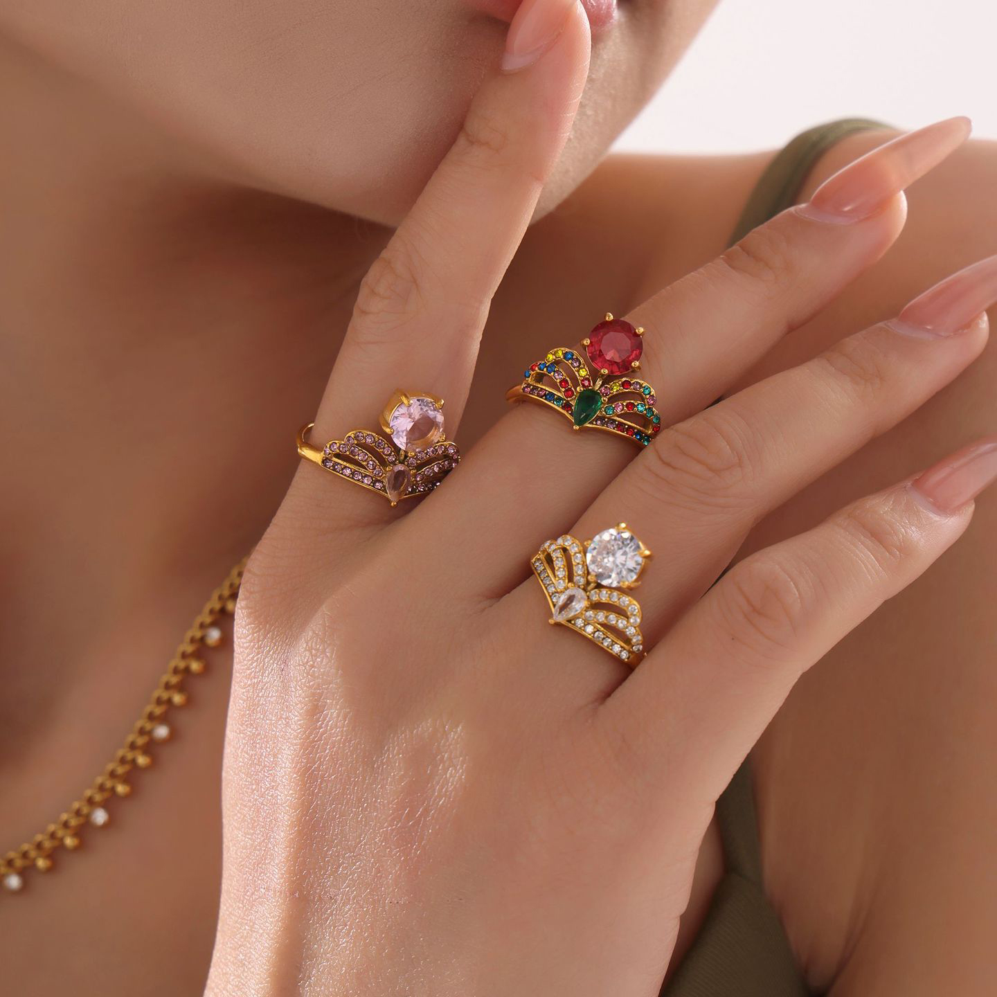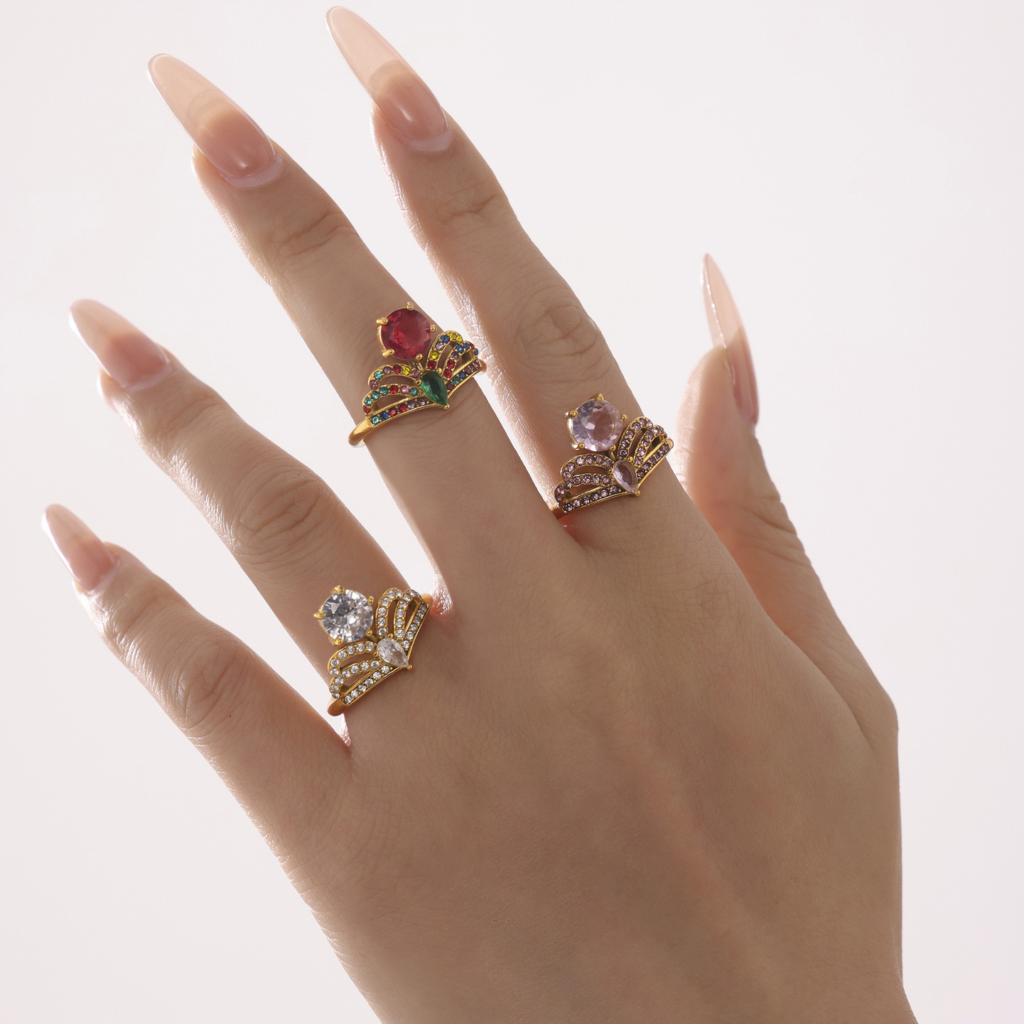 Bague en acier inoxydable Incrusté de zircon, Acier inoxydable 304, avec zircon cubique, Placage, bijoux de mode & pour femme, plus de couleurs à choisir, Taille:7, Vendu par PC
