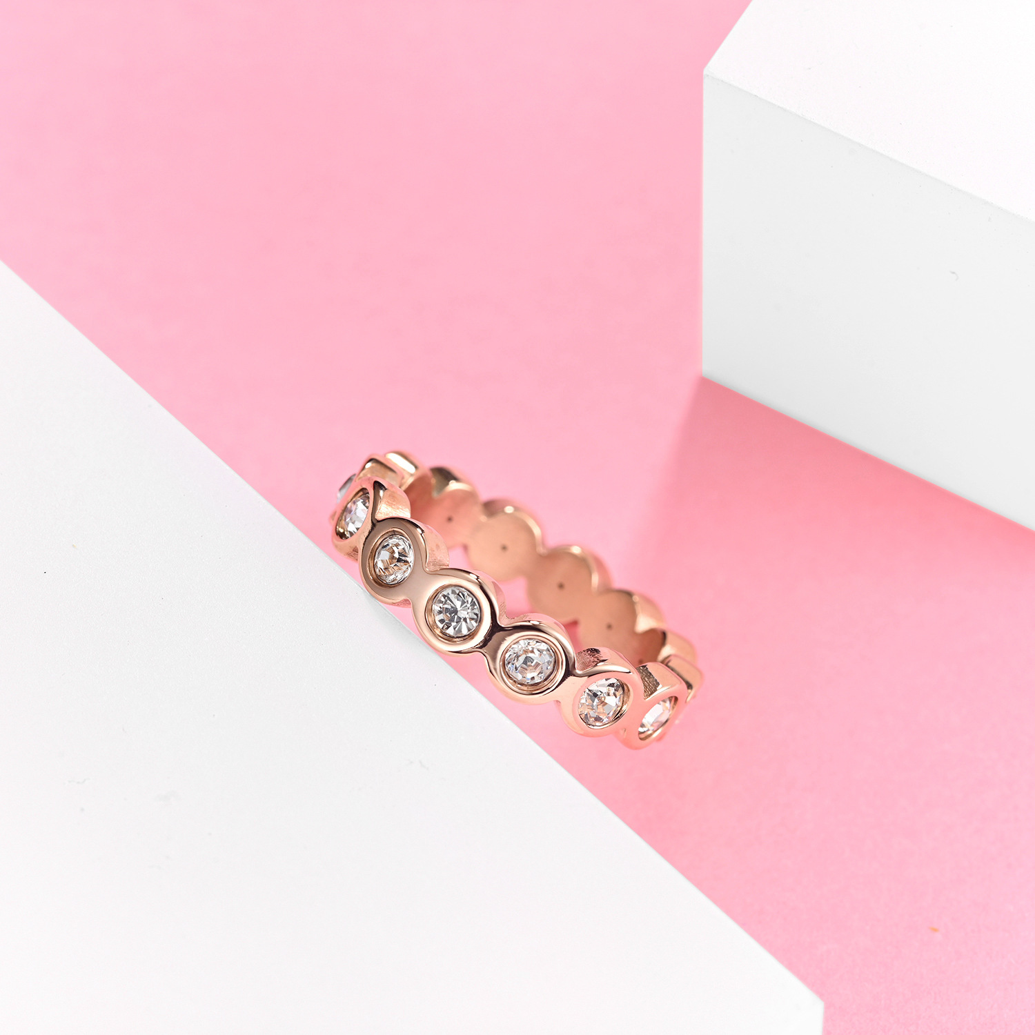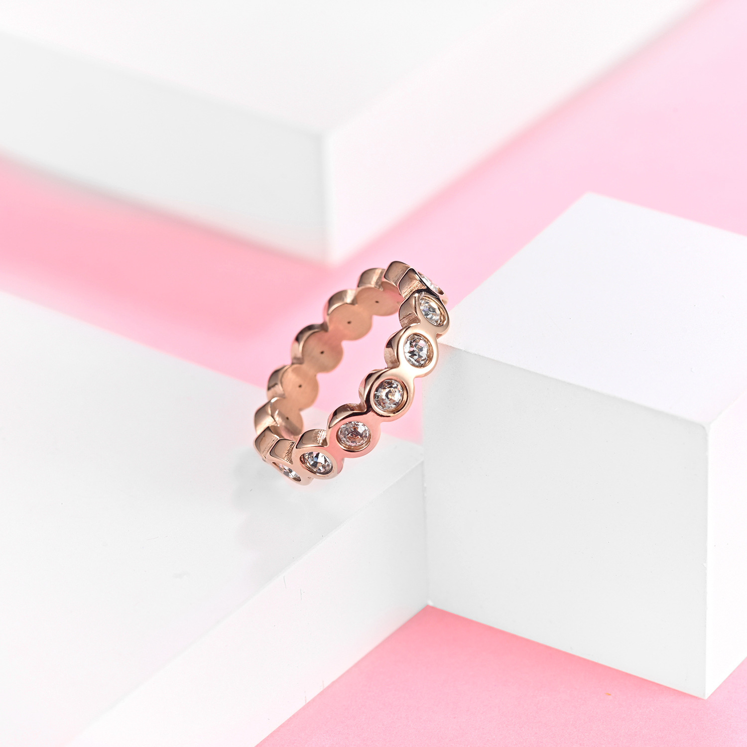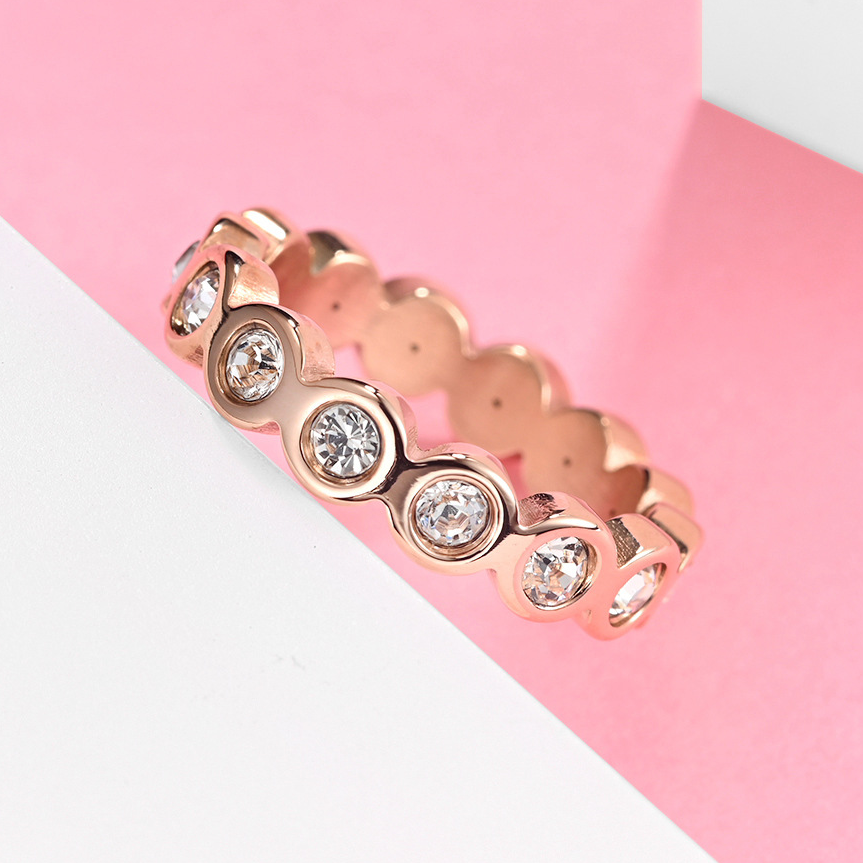 Bague en acier inoxydable Incrusté de zircon, Acier inoxydable 304, avec zircon cubique, Placage ionique sous vide, pour femme, Vendu par PC