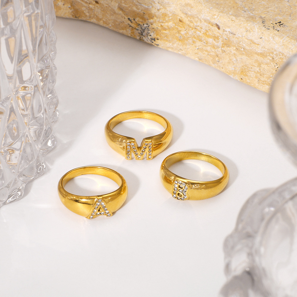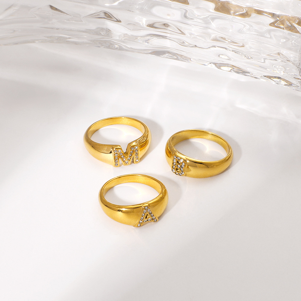 Bague en acier inoxydable Incrusté de zircon, Acier inoxydable 304, Placage de couleur d'or, bijoux de mode & pavé de micro zircon, doré, Vendu par PC