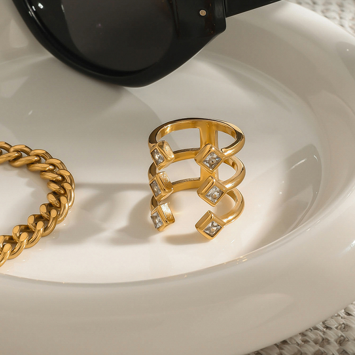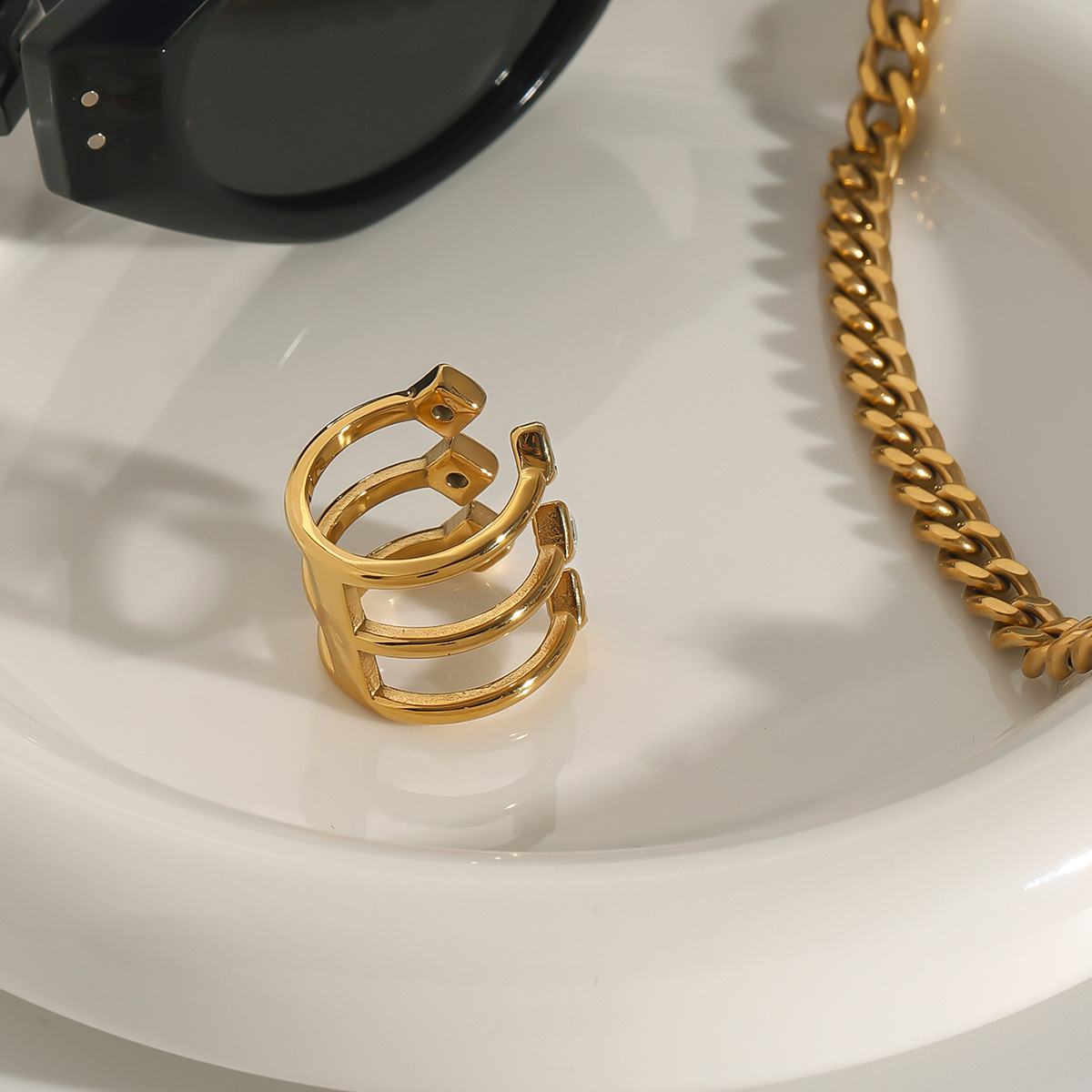 Bague en acier inoxydable Incrusté de zircon, Acier inoxydable 304, avec zircon cubique, Placage, bijoux de mode & pour femme & creux, Or, Vendu par PC