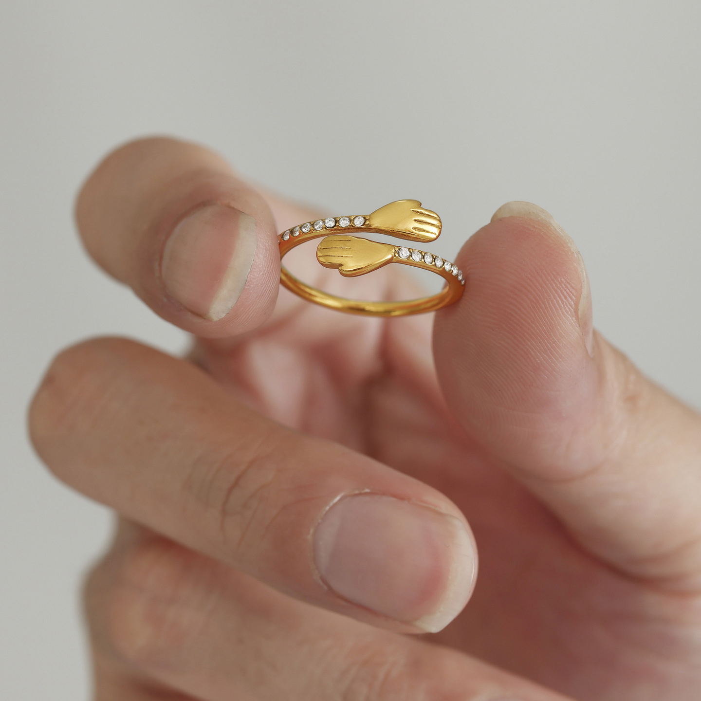 Bague en acier inoxydable Incrusté de zircon, Acier inoxydable 304, avec zircon cubique, Plaqué d'or, bijoux de mode & pour femme, Taille:7, Vendu par PC