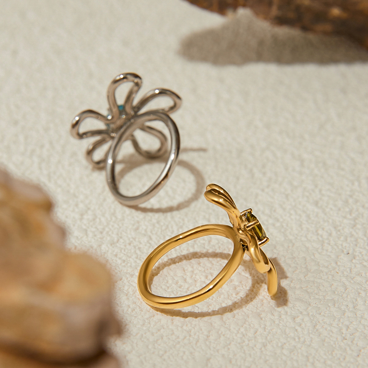Bague en acier inoxydable Incrusté de zircon, Acier inoxydable 304, avec zircon cubique, fleur, Placage, normes différentes pour le choix & pour femme & creux, plus de couleurs à choisir, Vendu par PC