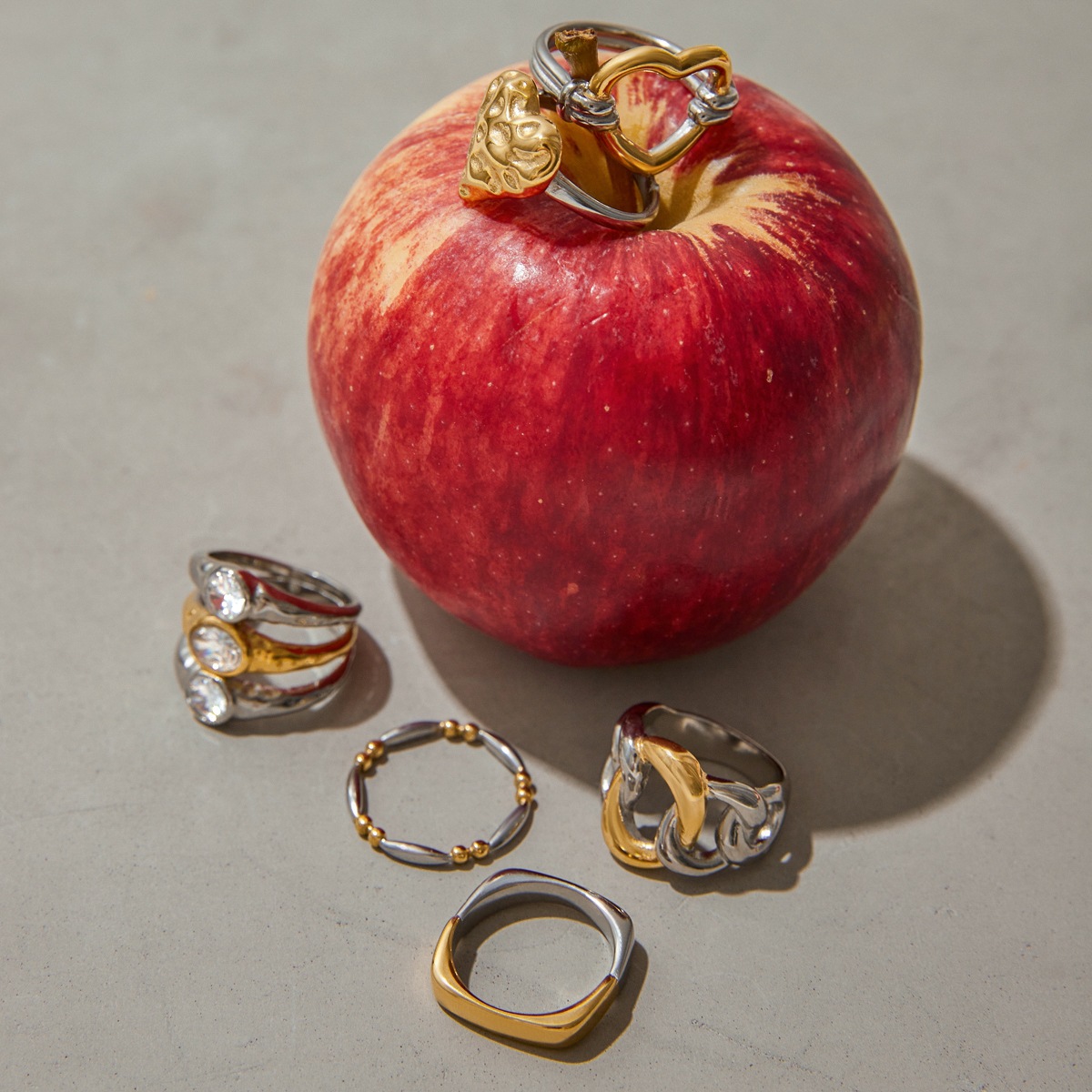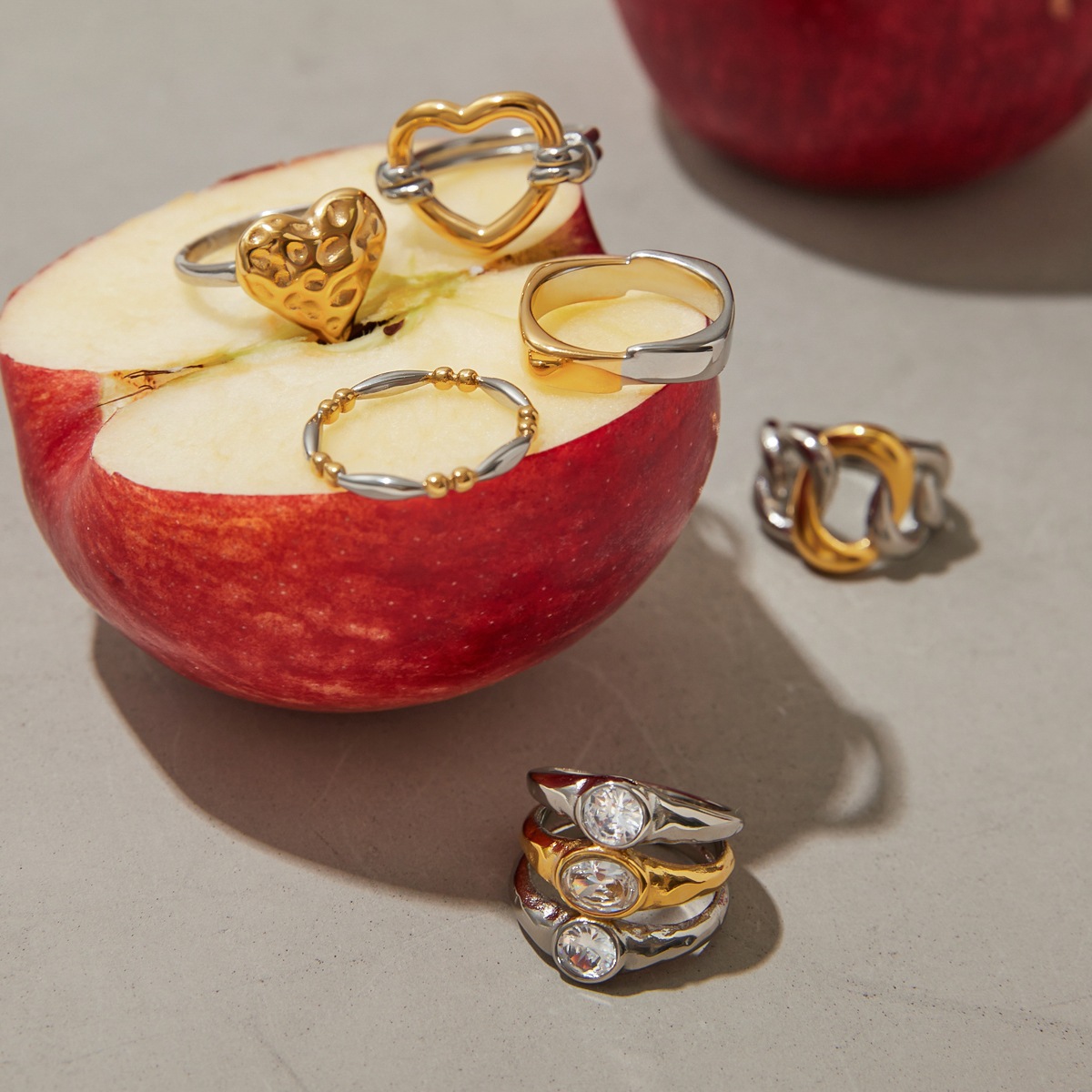 Bague en acier inoxydable Incrusté de zircon, Acier inoxydable 304, Placage, styles différents pour le choix & pour femme & deux tons, Vendu par PC