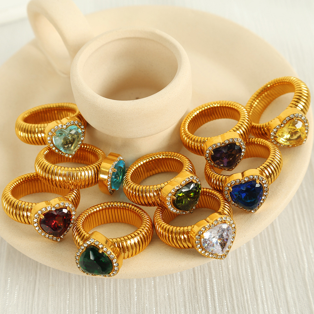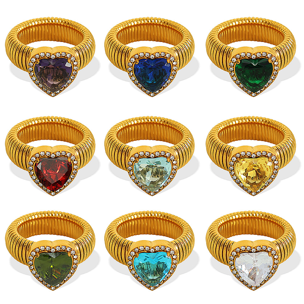 Bague en acier inoxydable Incrusté de zircon, Acier inoxydable 304, avec zircon cubique, Placage de couleur d'or, bijoux de mode & normes différentes pour le choix & pour femme, plus de couleurs à choisir, Vendu par PC