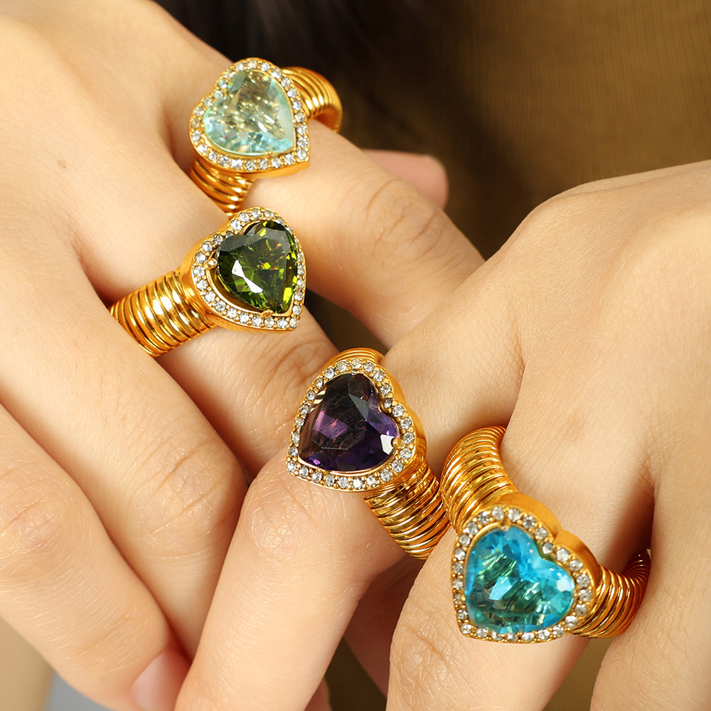 JZ50 Meiwei 7# Olive Green Zirconium Gold Ring