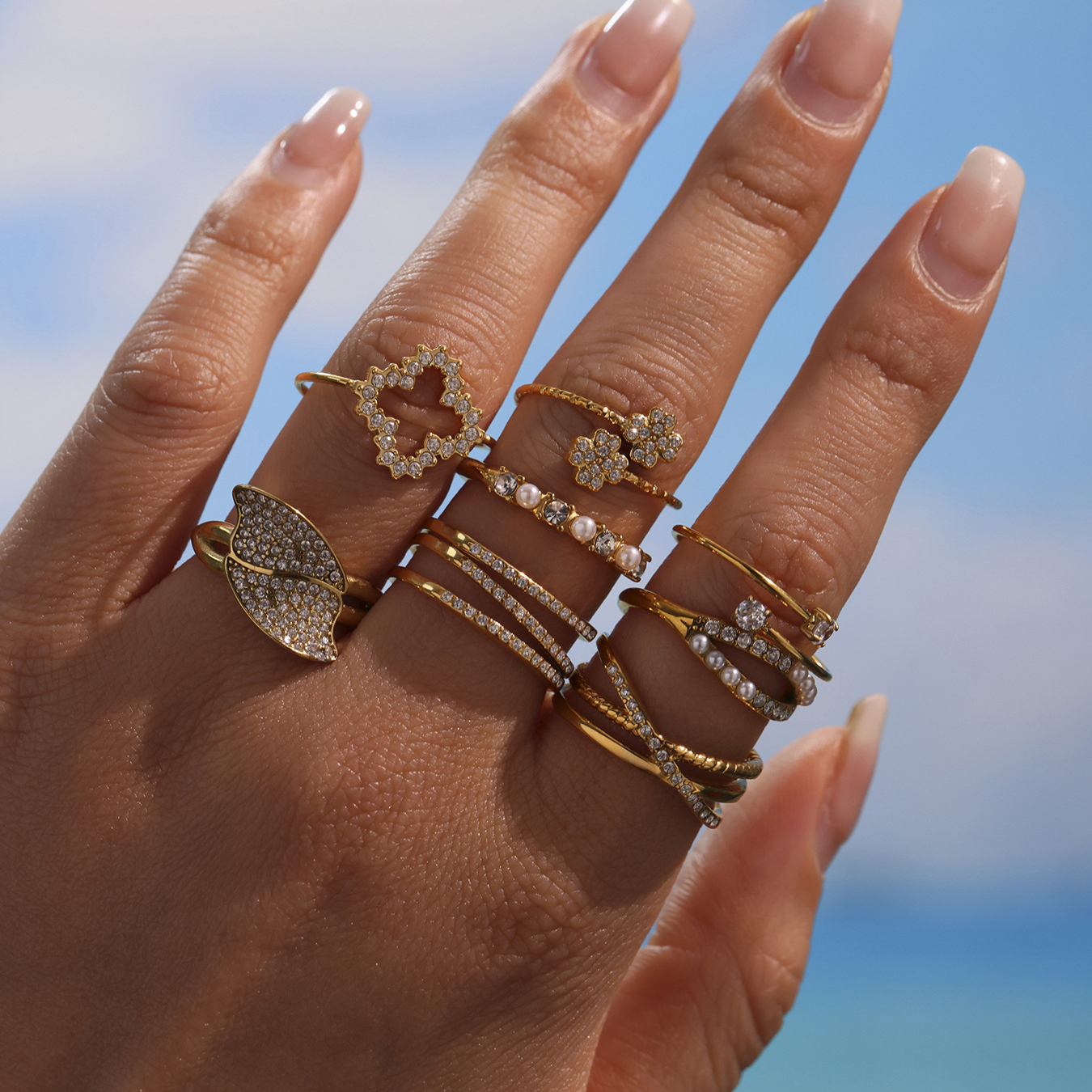 Bague en acier inoxydable Incrusté de zircon, Acier inoxydable 304, avec zircon cubique, Placage, bijoux de mode & styles différents pour le choix & pour femme, plus de couleurs à choisir, Vendu par PC