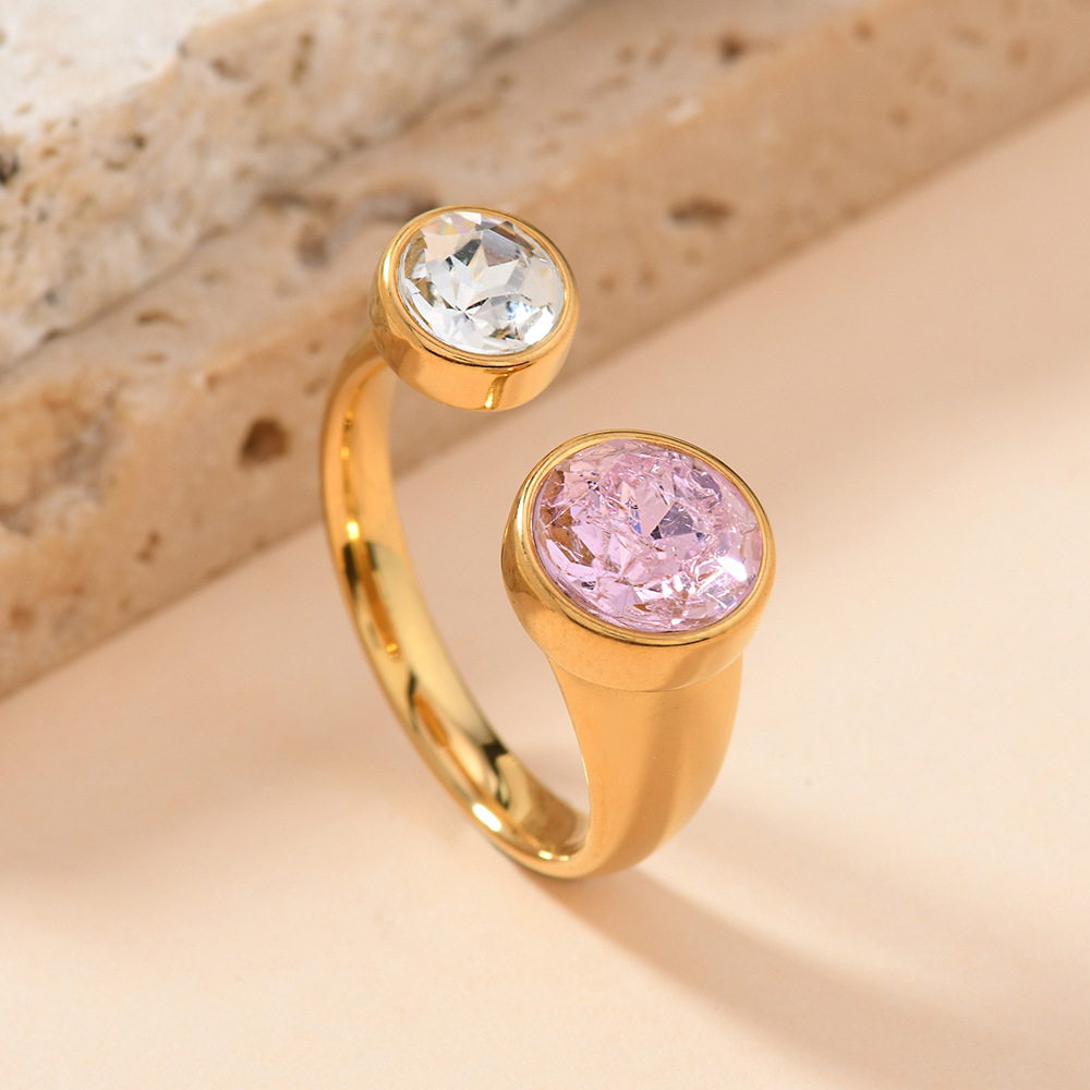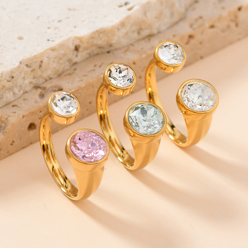 Bague en acier inoxydable Incrusté de zircon, Acier inoxydable 304, avec zircon cubique, Placage de couleur d'or, bijoux de mode & unisexe, plus de couleurs à choisir, Vendu par PC