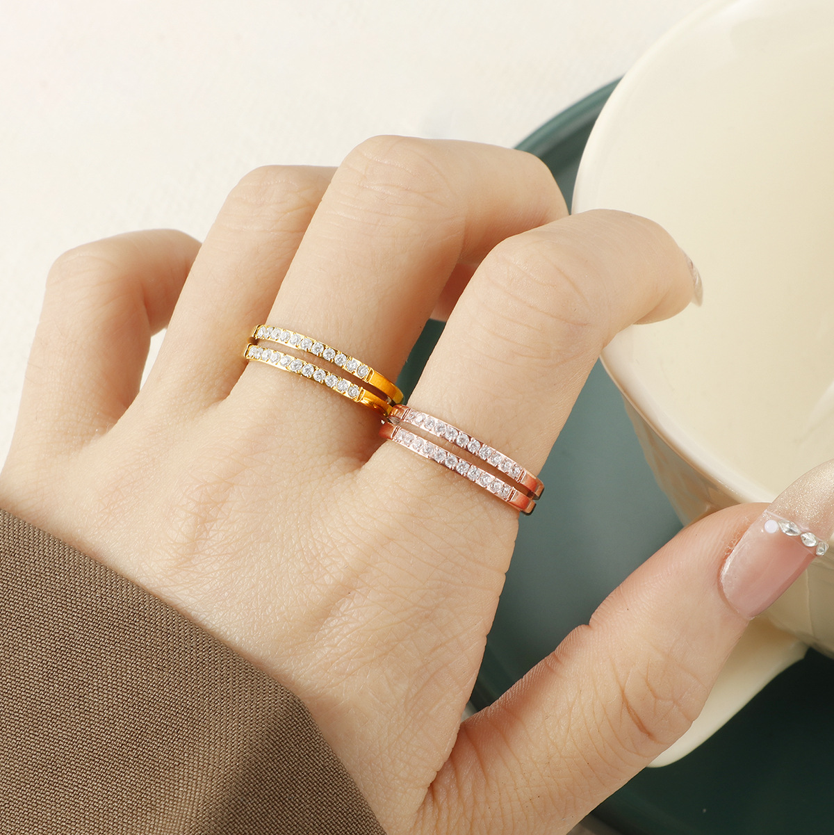 Bague en acier inoxydable Incrusté de zircon, Acier inoxydable 304, Placage, Double couche & normes différentes pour le choix & pavé de micro zircon & pour femme, plus de couleurs à choisir, Vendu par PC