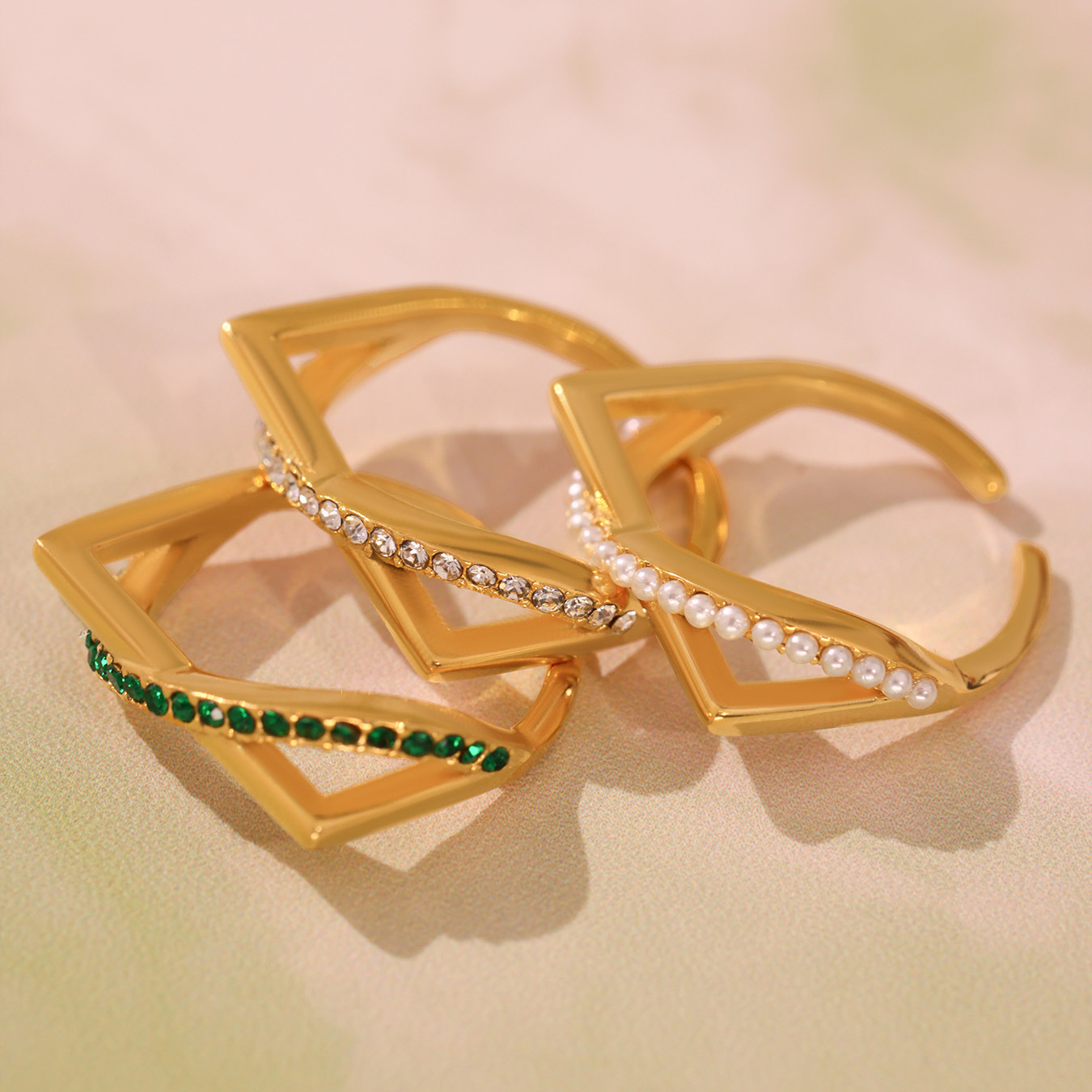 Bague en acier inoxydable Incrusté de zircon, Acier inoxydable 304, Placage, différents matériaux pour le choix & styles différents pour le choix & pavé de micro zircon & pour femme, doré, Vendu par PC