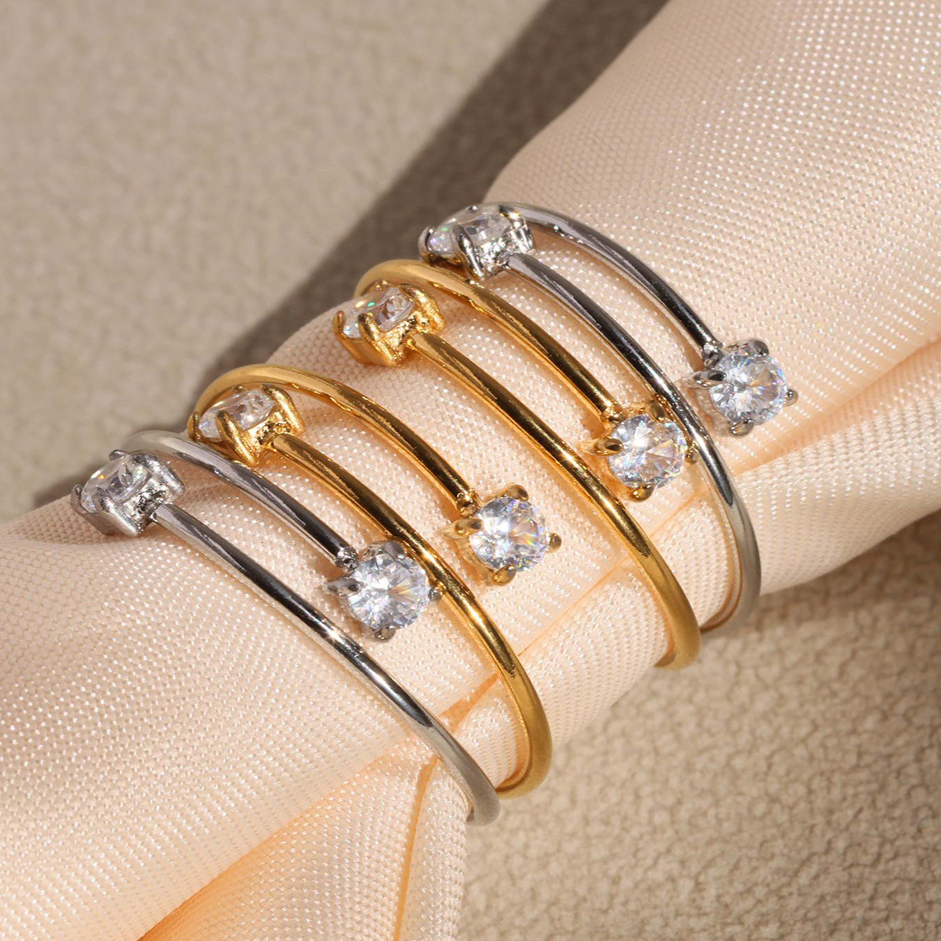 Bague en acier inoxydable Incrusté de zircon, Acier inoxydable 304, avec zircon cubique, Placage, bijoux de mode & styles différents pour le choix & pour femme, plus de couleurs à choisir, Vendu par PC