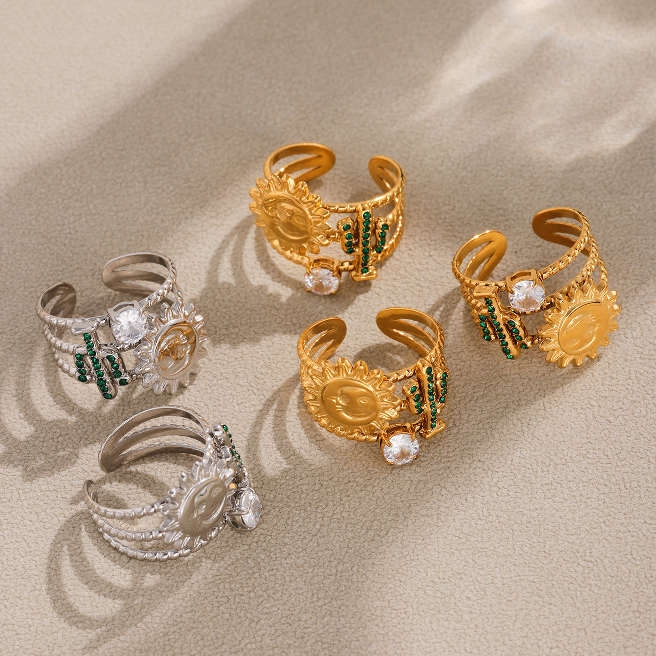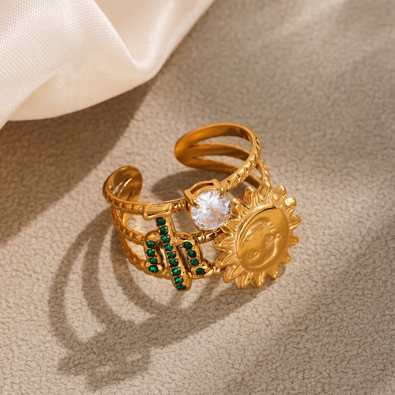 Bague en acier inoxydable Incrusté de zircon, Acier inoxydable 304, avec zircon cubique, Placage, bijoux de mode & pour femme & creux, plus de couleurs à choisir, Vendu par PC